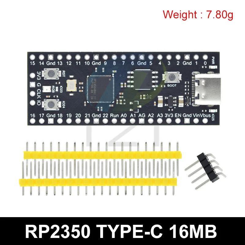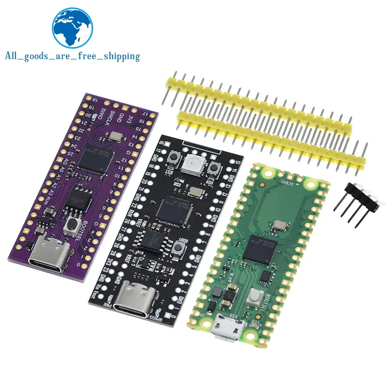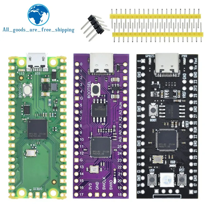 Elevate your development projects with this versatile Raspberry Pi Pico RP2040 board, featuring a sleek rectangular design with rounded corners. Available in vibrant green, rich purple, and classic black, each board boasts a high-quality matte finish, complemented by gold-colored edge pins for an elegant touch. Equipped with the powerful RP2040 dual-core ARM Cortex-M0+ microcontroller, it offers 264KB of RAM and options for 4MB or 16MB of flash memory. The inclusion of a Type-C port ensures seamless connectivity, making it ideal for low-power, high-performance computing applications. Designed for customization and advanced development, this board is a reliable choice for electronics enthusiasts seeking precision and aesthetic appeal.