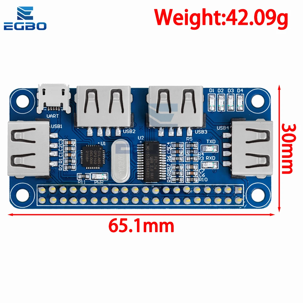 Experience seamless connectivity with this ingeniously designed USB hub extension board tailored specifically for Raspberry Pi 3, 2, and Zero W models. Showcasing a sleek, vibrant blue printed circuit board, this module features four precisely aligned exposed USB ports that ensure easy access and maximum efficiency. The minimalist surface-mounted electronic components add a refined, technical appeal, while the gold-plated pin headers provide enhanced durability and reliable connections. Its clean and orderly layout emphasizes functionality and style, perfect for enthusiasts seeking a high-performance, customized expansion solution. Whether you're managing serial debugging or expanding your USB capabilities, this module integrates effortlessly into your setup, blending aesthetic quality with practical efficiency for a confident and professional hardware experience.