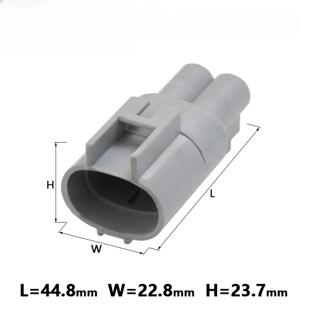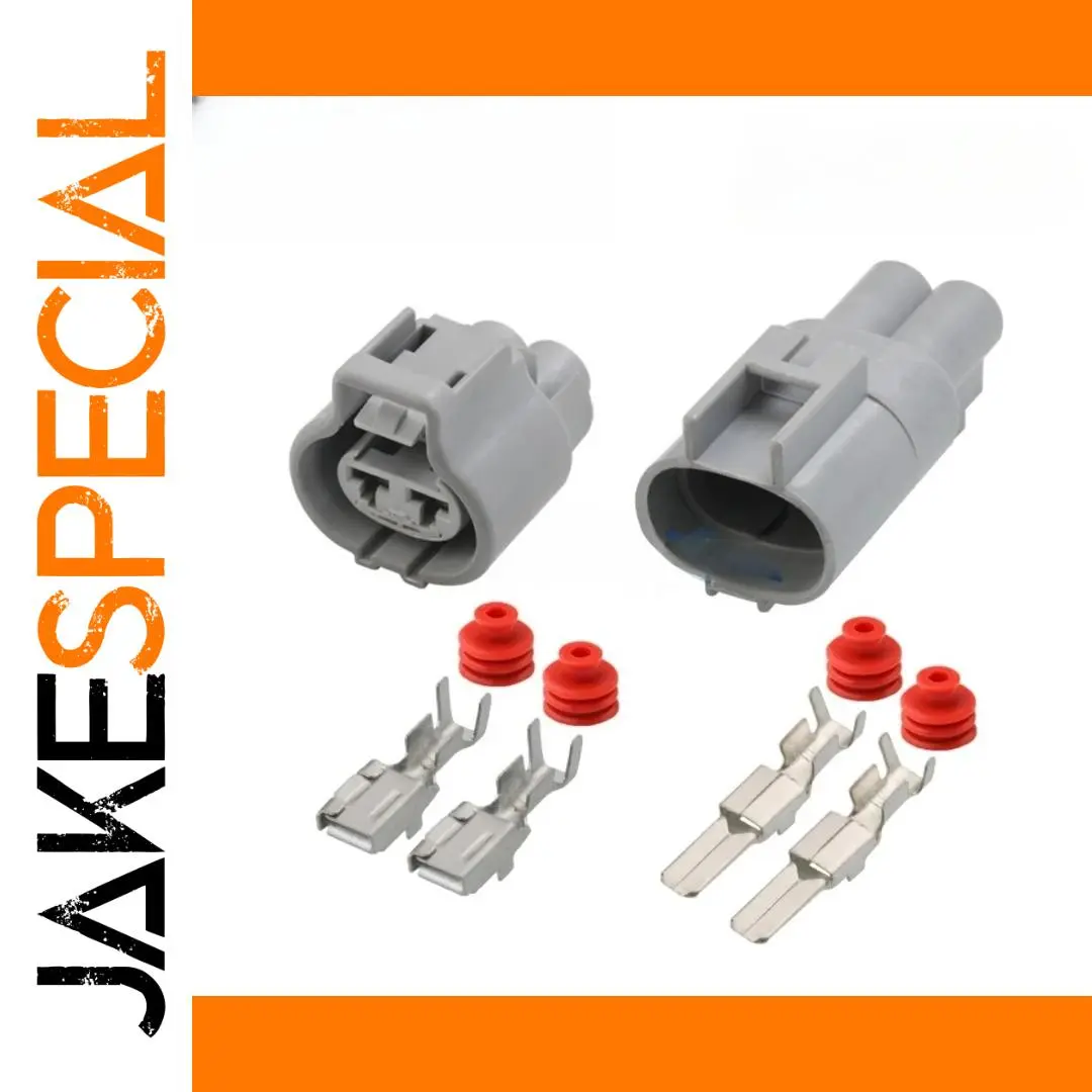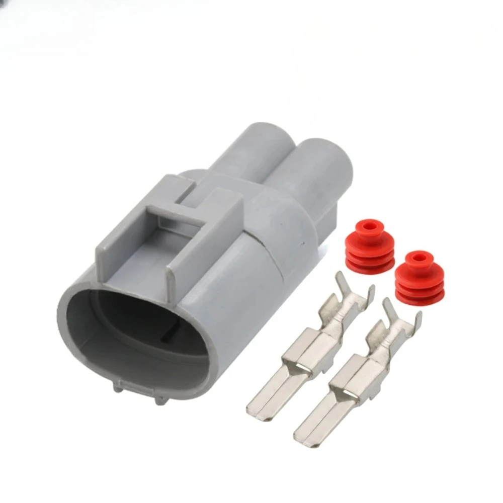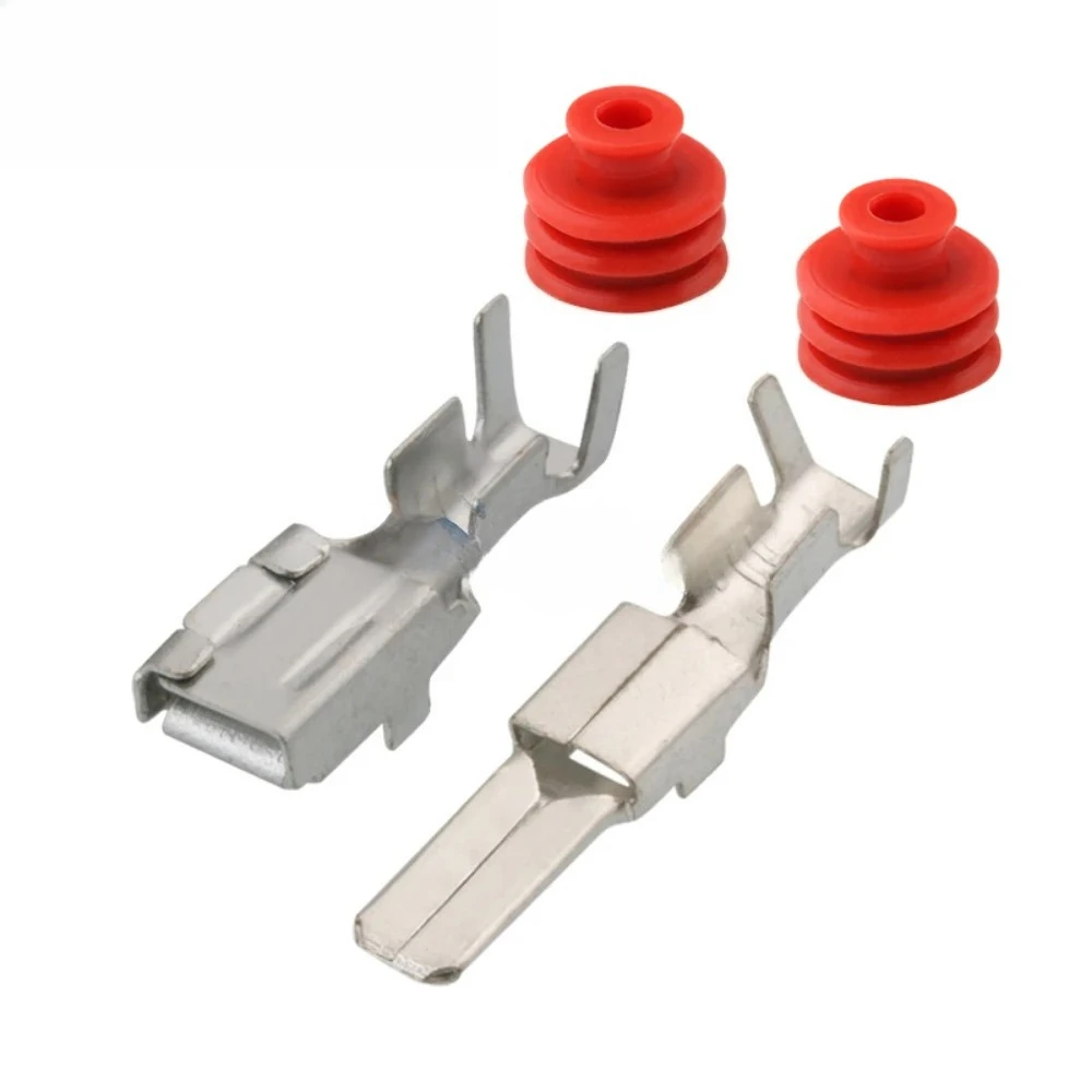 Enhance your vehicle’s cooling system with this set of two waterproof automotive connectors, compatible with the RAV4 fan system. The male and female connectors feature a durable, gray plastic housing with smooth, oval shapes, side locking clips, and internal slots for secure terminal placement. Bright red ribbed rubber gaskets ensure a waterproof seal, preventing water ingress in demanding conditions. The flat, rectangular metal terminals in a polished silver finish provide reliable electrical contact. Designed for 24V systems, these connectors are part of the DJ7021Y series (models DJ7021Y-4.8-11 and DJ7021Y-4.8-21), offering robust build quality and environmental resistance—ideal for automotive cooling applications and ensuring long-lasting performance.