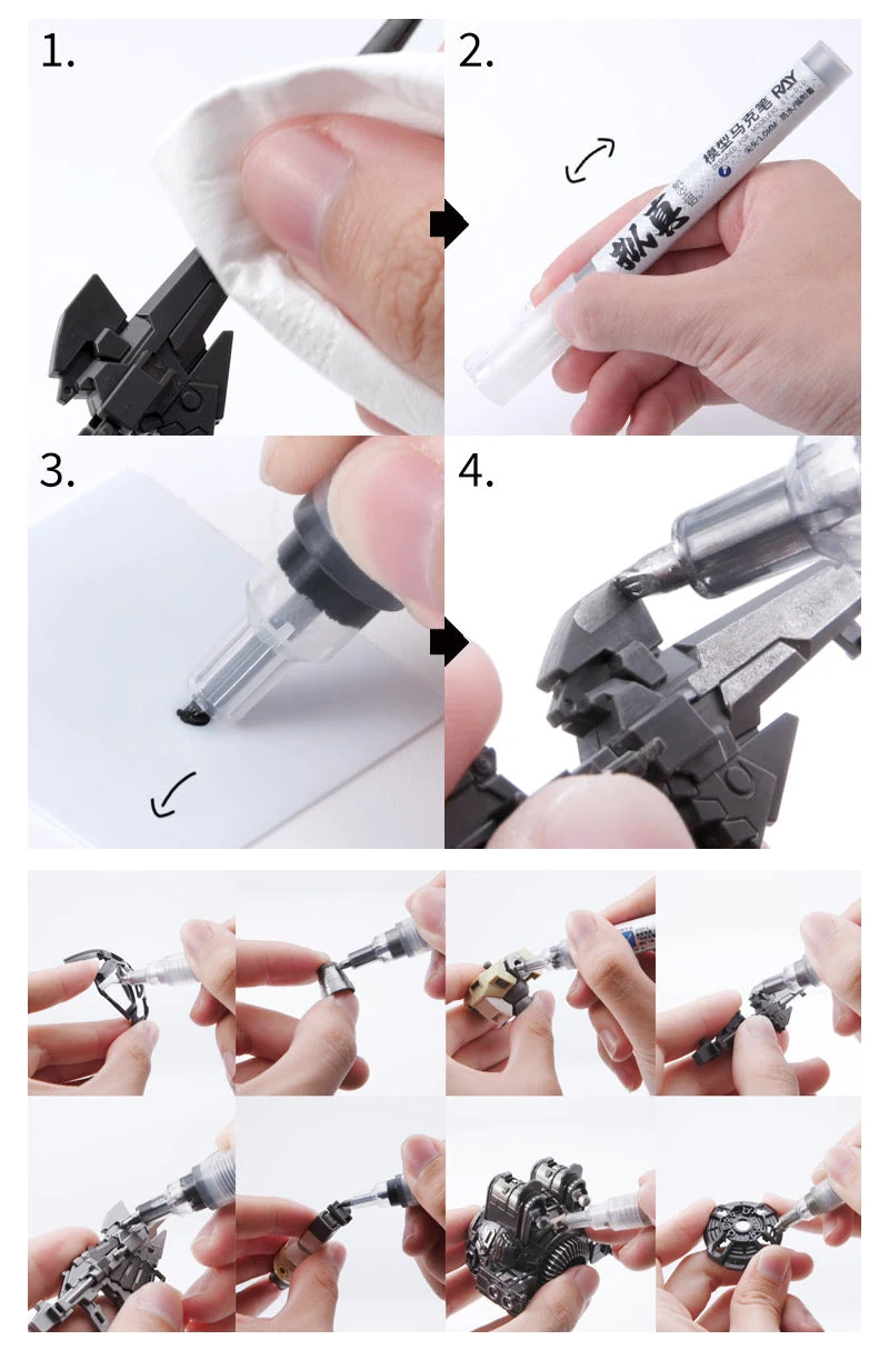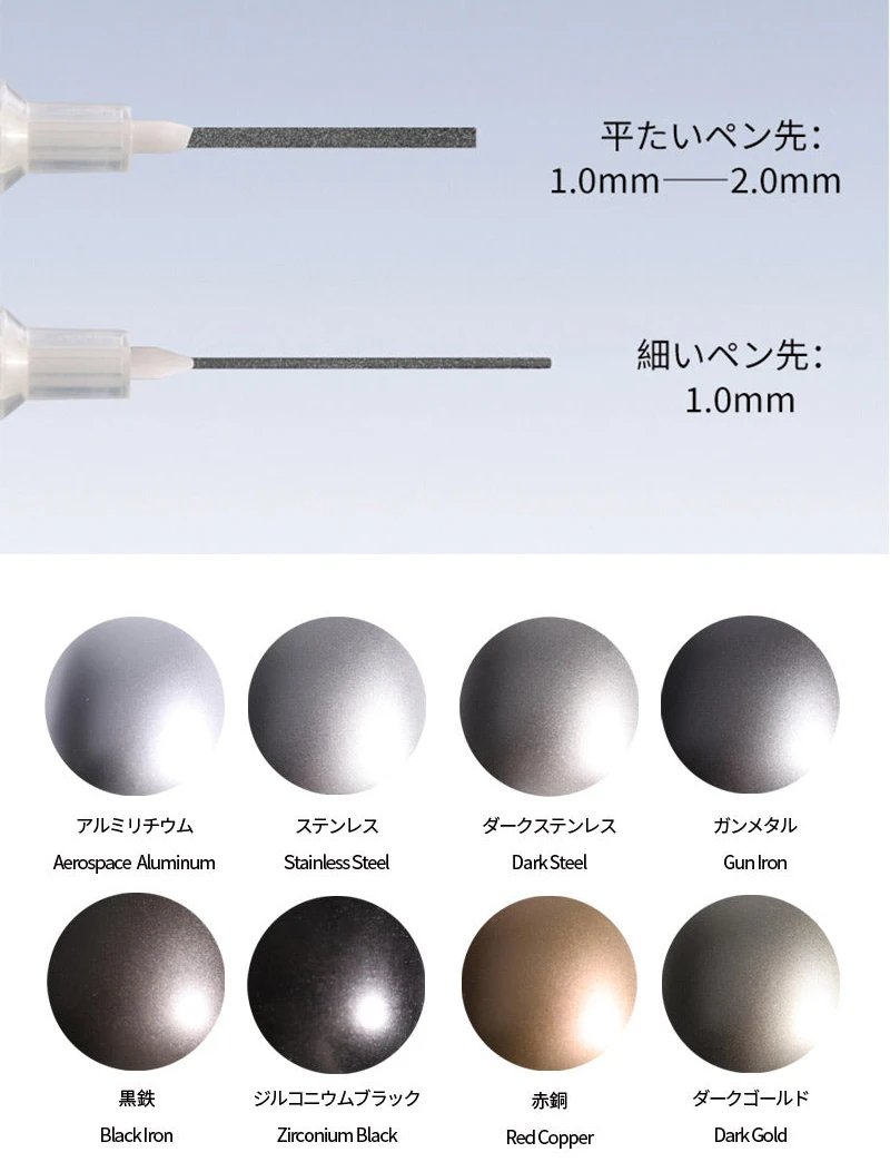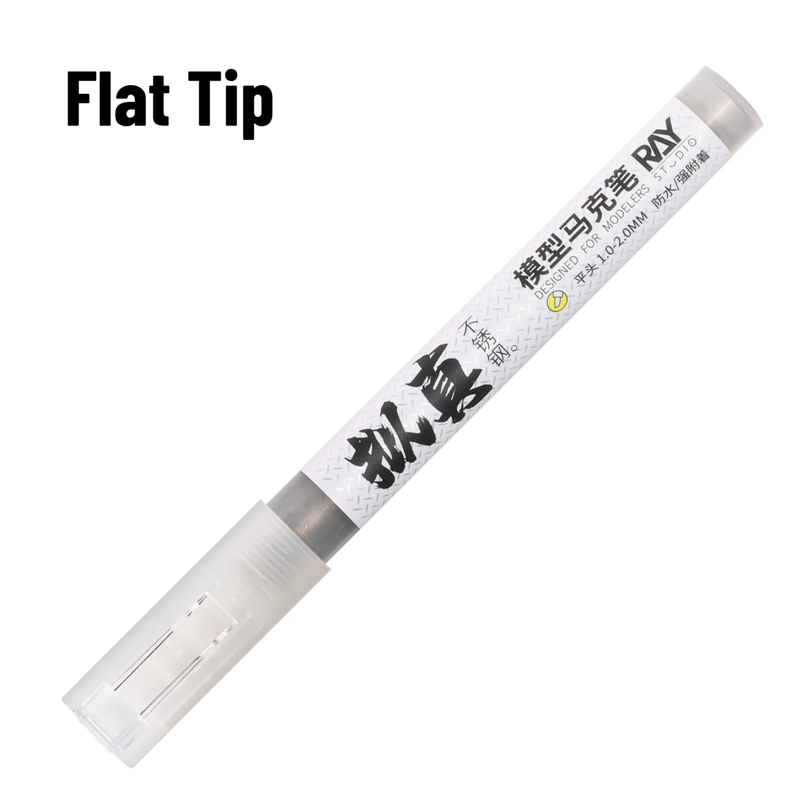The RAYSTUDIO EX Realistic Metallic Marker Pen features a durable hard plastic tip with both pointed and flat options, offering versatile applications for model building and hobby kits. Its self-leveling, stroke-free paint provides a long-lasting glossy finish with superior coverage, ideal for detailed or large-area work. Available in a range of stunning metallic shades including stainless steel, iron, zirconium black, dark steel, red copper, aerospace aluminum, black iron, and dark gold, this precision marking tool is user-friendly, requiring shaking before use and a tightly closed cap post-application. Perfect for adult enthusiasts seeking professional-quality metallic finishes, it ensures smooth, stable application on metal and model surfaces.