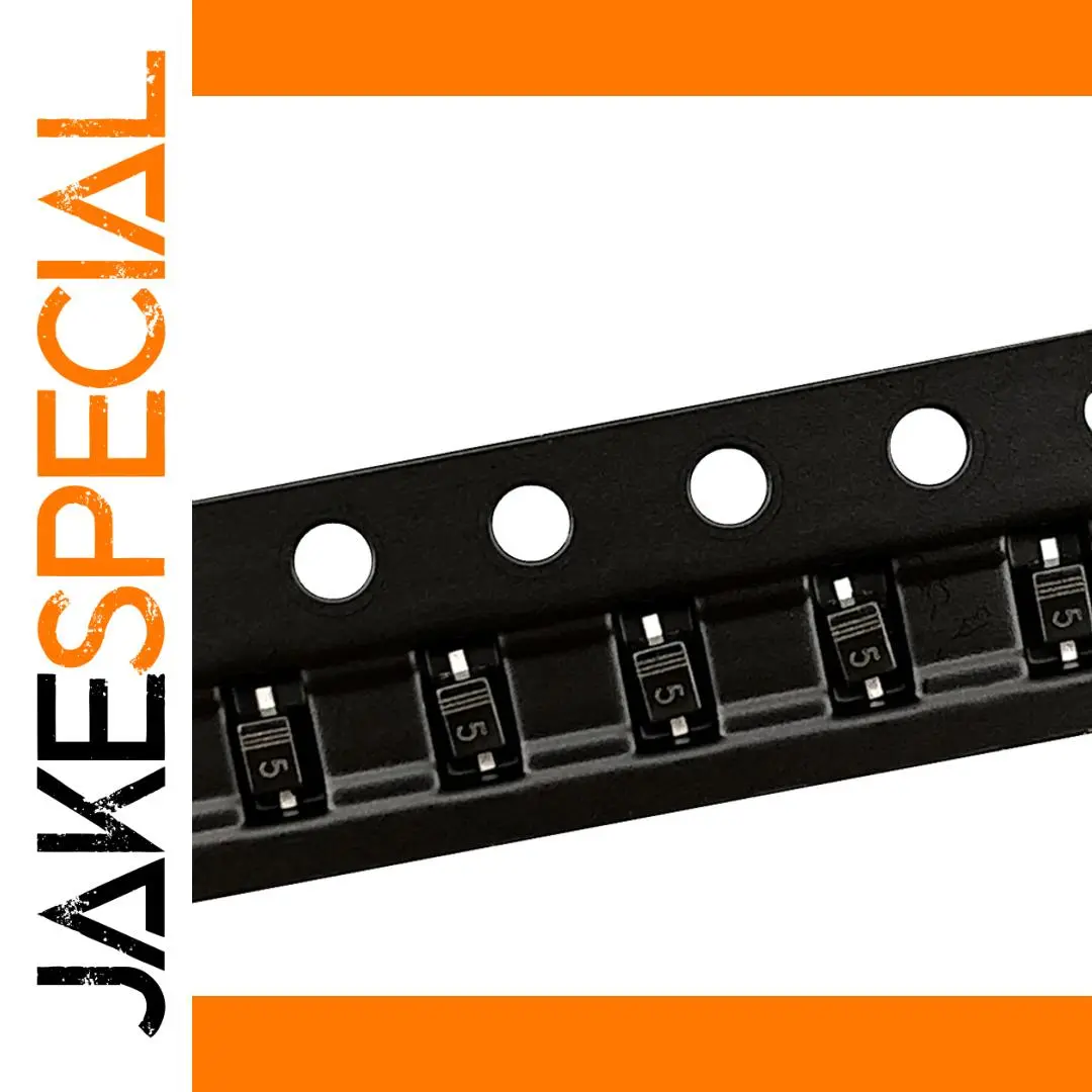 These high-quality RB751V-40 SOD-323 surface-mount Schottky diodes, manufactured by Takin Chip, come in a pack of 100 pieces and are designed for efficient electronic applications. Each diode measures 2.0 mm in length and 1.25 mm in width, fitting the 0805 size standard, and features a clear white “5” marking for easy identification. The diodes are in new condition, ideal for circuits requiring low forward voltage and high efficiency. Packaged in through-hole format for reliable placement, they offer a sleek black plastic tape reel with evenly spaced diodes and circular feed holes, underscoring their precision and uniformity for professional electronic assembly and repair.