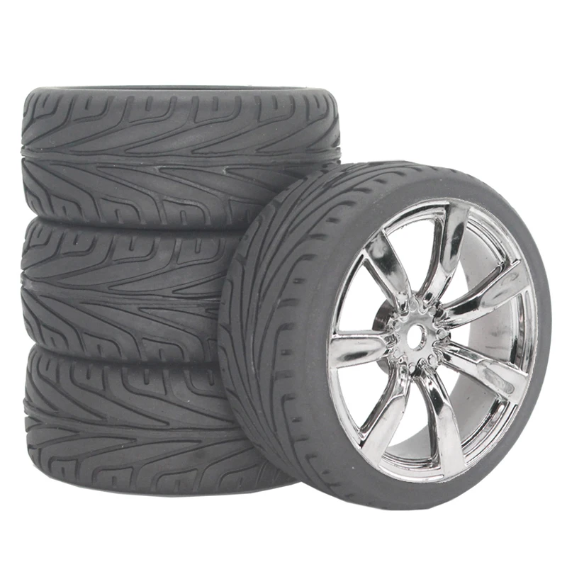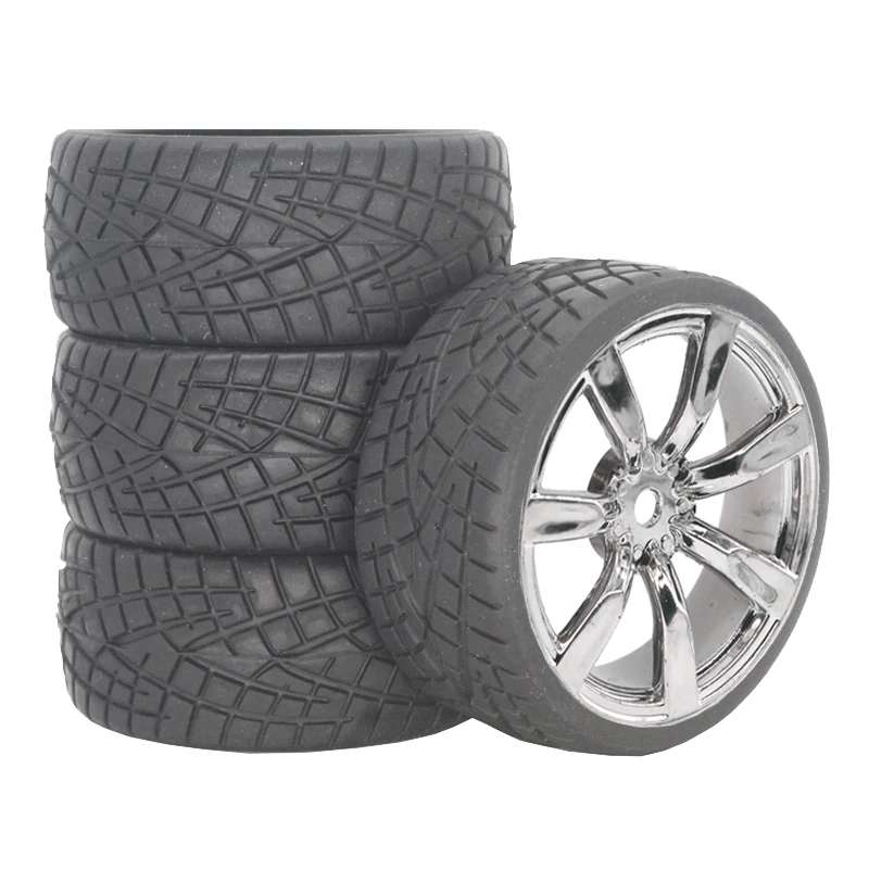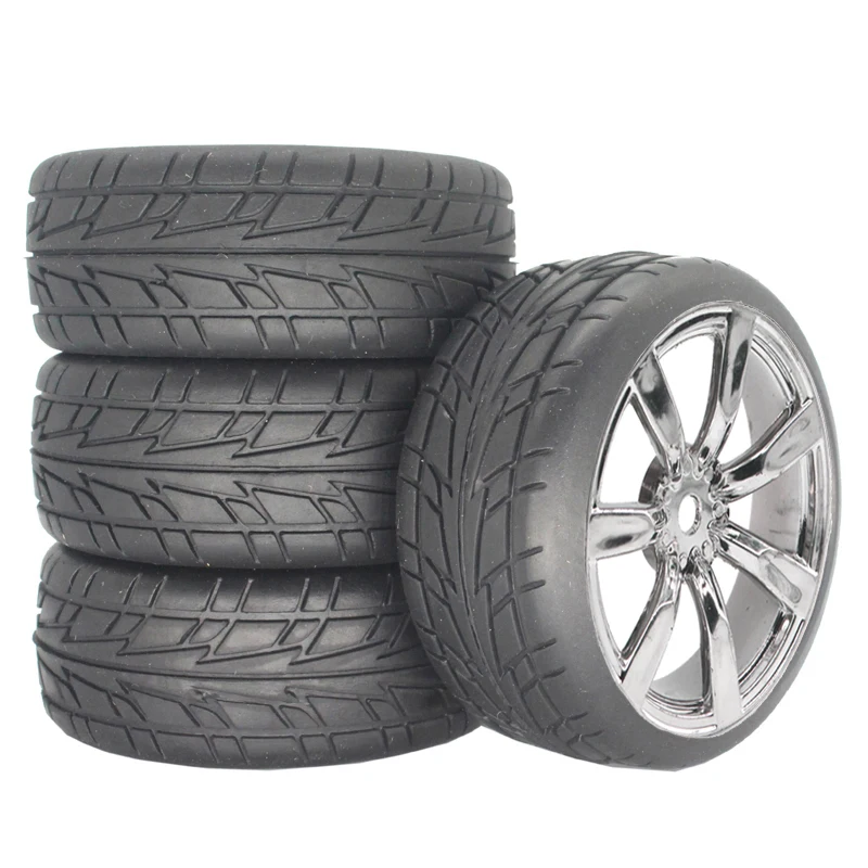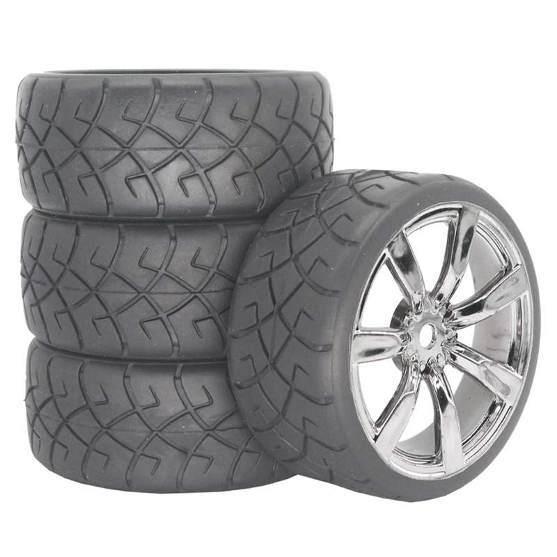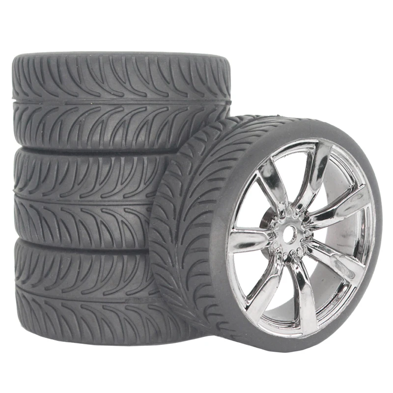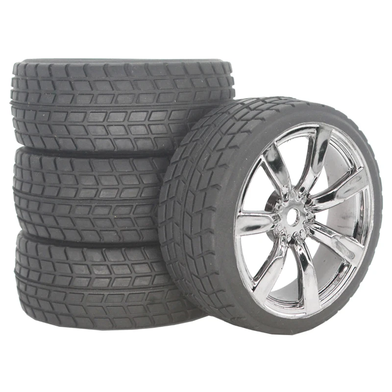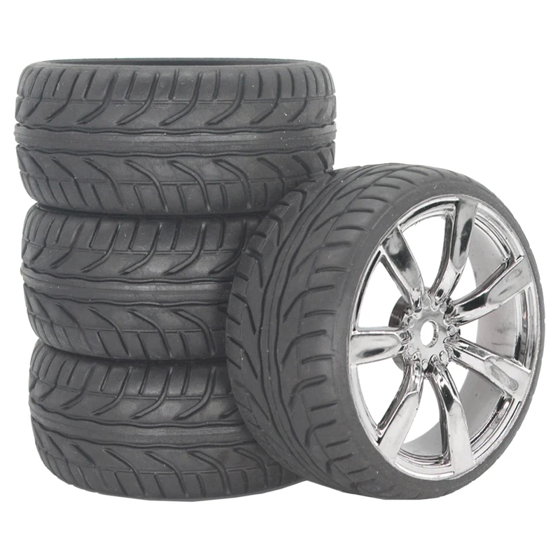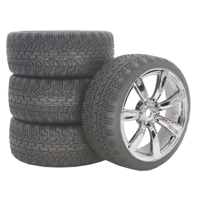 - Includes four rubber tires and four black plastic rims, offering a comprehensive upgrade for your RC crawler or climbing vehicle.