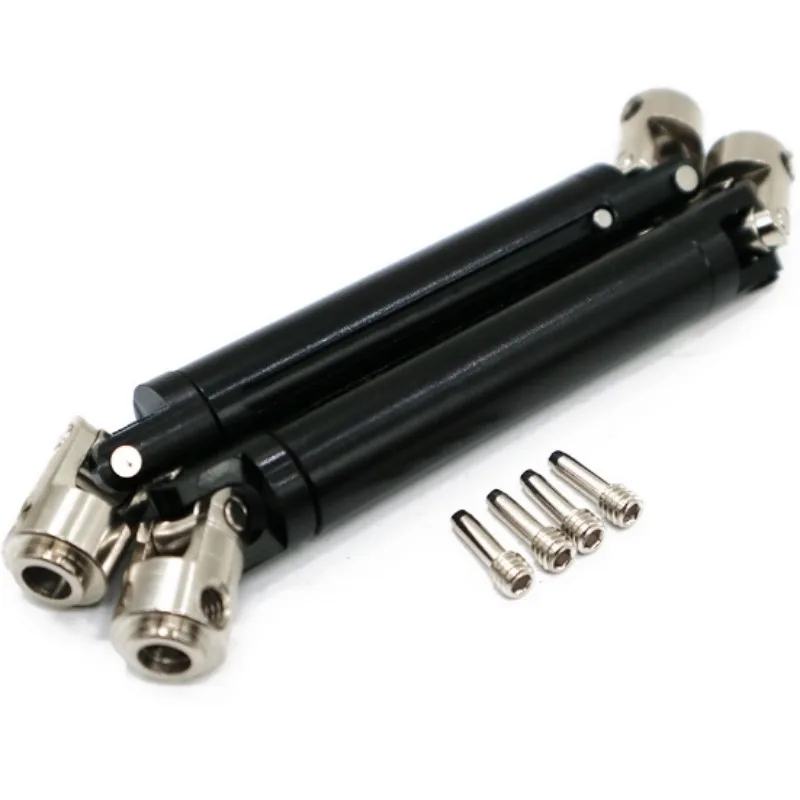 Experience enhanced durability and performance with this meticulously crafted aluminum alloy drive shaft designed for 1/10 scale RC vehicles. Its sleek black finish combined with shiny silver universal joints creates an industrial, modern aesthetic that emphasizes strength and precision. The cylindrical body features a smooth, matte texture, highlighting its robust construction. Suitable for off-road models like SCX10 and D90, this drive shaft improves power transfer efficiency while maintaining a streamlined look. Whether upgrading your vehicle or replacing worn parts, you’ll appreciate the fit, finish, and reliable design that promises long-lasting performance, ensuring your RC vehicle runs smoothly on challenging terrains.