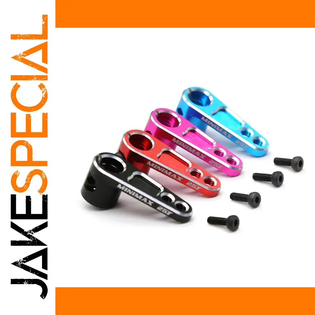 Experience the perfect upgrade with this set of four aluminum servo horn arms, designed for durability and style. Crafted from anodized aluminum, each arm features a sleek metallic finish and vibrant colors—pink, red, blue, and black—that add a touch of personality to your remote control vehicle. Measuring 31mm in length, these arms are ergonomically engineered with elongated, slightly curved shapes, multiple drilled holes for versatile mounting options, and angular cutouts for weight reduction. They are compatible with 25T servos and suitable for four-wheel-drive systems on RC cars and vehicles. The top surface is precisely engraved or printed with “MINIMAX 25T,” ensuring accurate fitment and performance. Built for enthusiasts aged 14 and above, these servo arms are a reliable choice for performance upgrades.