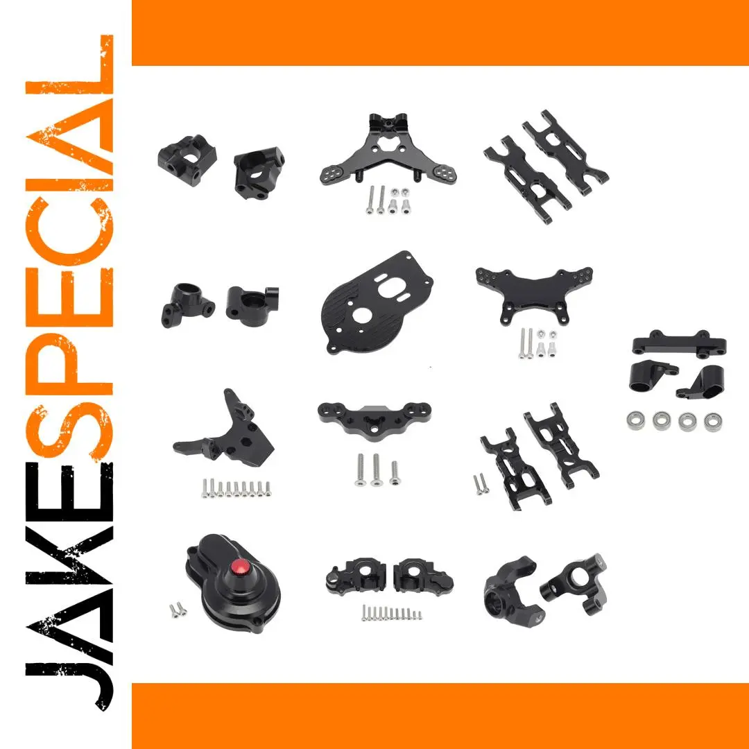 Upgrade your Losi 1/18 Mini-T 2.0 2WD RC truck with this comprehensive set of high-quality, black metallic components designed for durability and performance. The kit includes steering knuckles, front and rear suspension arms, shock towers, gearbox housing and cover, motor mount, rear axle base, front bulkhead, tie rod mount, block C, and a 13-piece OP parts set, all engineered for precise fit and easy installation. Built for vehicles rated for ages 14 and above, these parts enhance structural integrity, improve handling, and offer a sleek, industrial aesthetic. Trust in these robust upgrade parts to elevate your RC truck’s performance and durability for your next adventure.