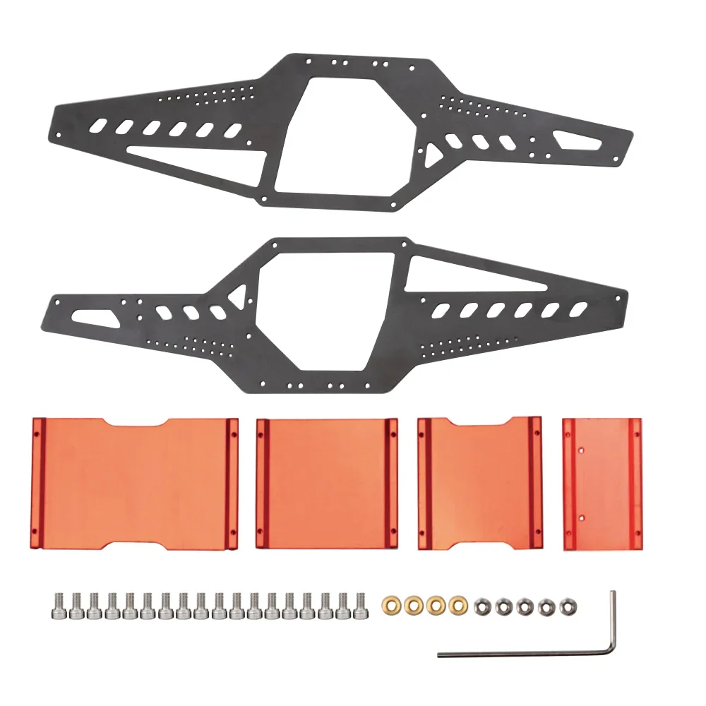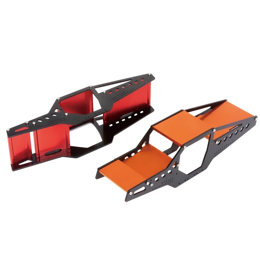 Enhance your RC experience with this lightweight, durable cage chassis kit compatible with Axial SCX24 models. Crafted from CNC-machined aluminum alloy and carbon fiber, it measures 158mm in length, 38mm in width, and 42mm in height, weighing just 45g. Featuring a low center of gravity and multiple shock mounting holes, it offers improved stability and performance. Available in striking silver, bold red, and vibrant orange, this unassembled kit requires additional parts from a long wheelbase SCX24, as well as hardware, ESC, power components, and links for complete setup. Perfect for skilled hobbyists seeking a sleek, high-performance upgrade.