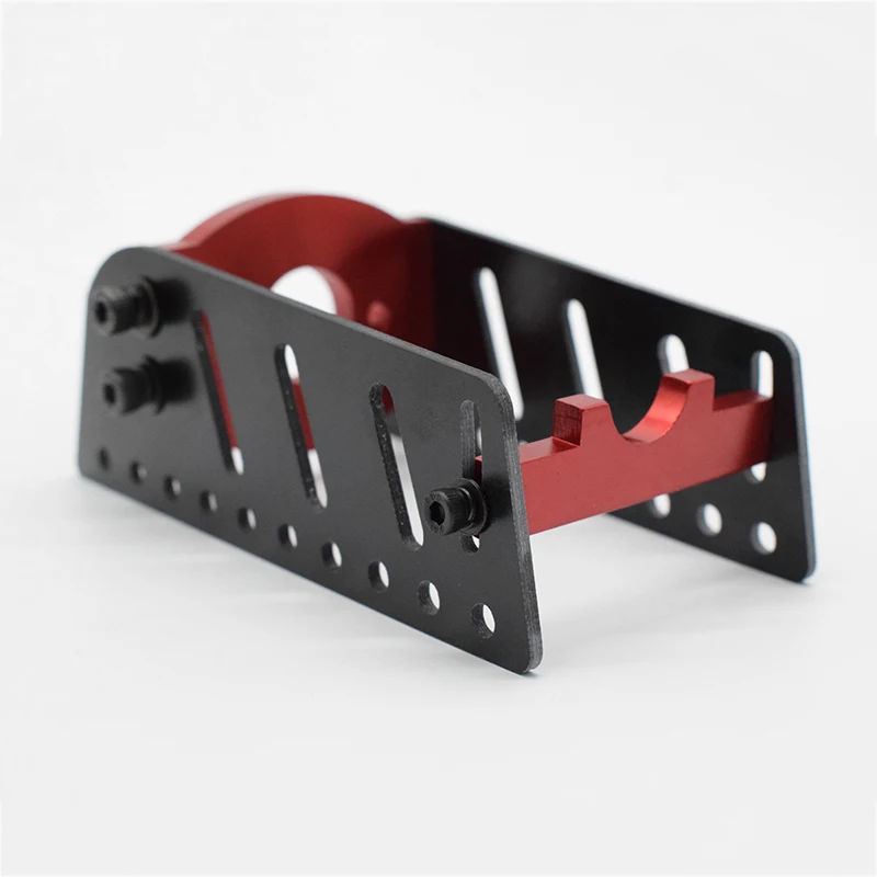 Experience secure and precise motor mounting with this durable metal RC boat 775 motor mount, designed to ensure stability during high-speed runs. Crafted from lightweight aluminum alloy, it combines a sleek black matte finish with striking red support components for a modern, industrial appearance. The side panels measure 108mm in length and 40mm in width, featuring multiple evenly spaced holes for flexible positioning. The red cylindrical reinforcement adds strength and visual contrast, while the aluminum plate, measuring 52mm by 42mm, provides a reliable attachment point for your motor. This assembly guarantees a secure fit for 775 motors with a 29mm fixing hole pitch, supporting stable operation even in demanding conditions. Its professional finish and rugged construction make it ideal for hobbyists and enthusiasts aiming for top performance in RC boat racing.