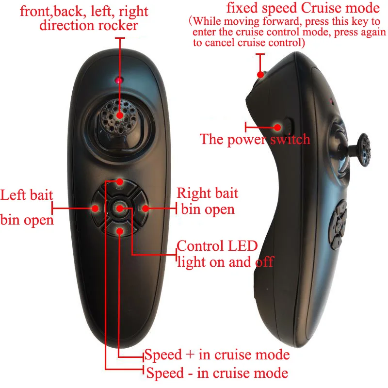- Offers impressive wireless control distance of 500 meters, with stable signals via a sturdy cylindrical antenna, ideal for open water control of your bait boat from afar.