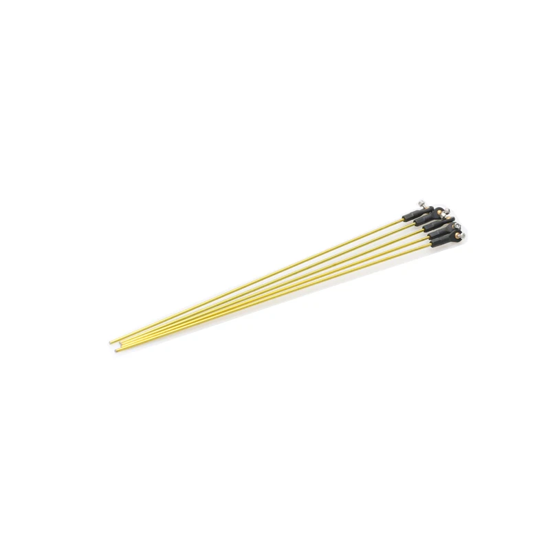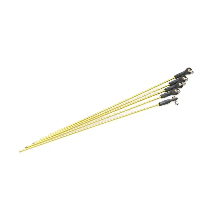 Experience precise control with this set of five water-absorbing rudder pull rods designed for remote control boats. Crafted from durable composite material with a sleek, gold-colored electroplated finish, these rods offer a shiny, corrosion-resistant surface. The rods are available in three lengths: 20cm, 25cm, and 27cm, allowing for customizable steering setups. Each rod features M2 ball-end joints, screws, and nuts for easy assembly, ensuring a secure fit during intense navigation. The slim, straight design promotes smooth movement and high responsiveness. Whether you're upgrading or repairing your RC boat, these components provide both functionality and aesthetic appeal. Their polished, technical look complements high-performance vessel modifications, making them ideal for hobbyists seeking reliable DIY parts.