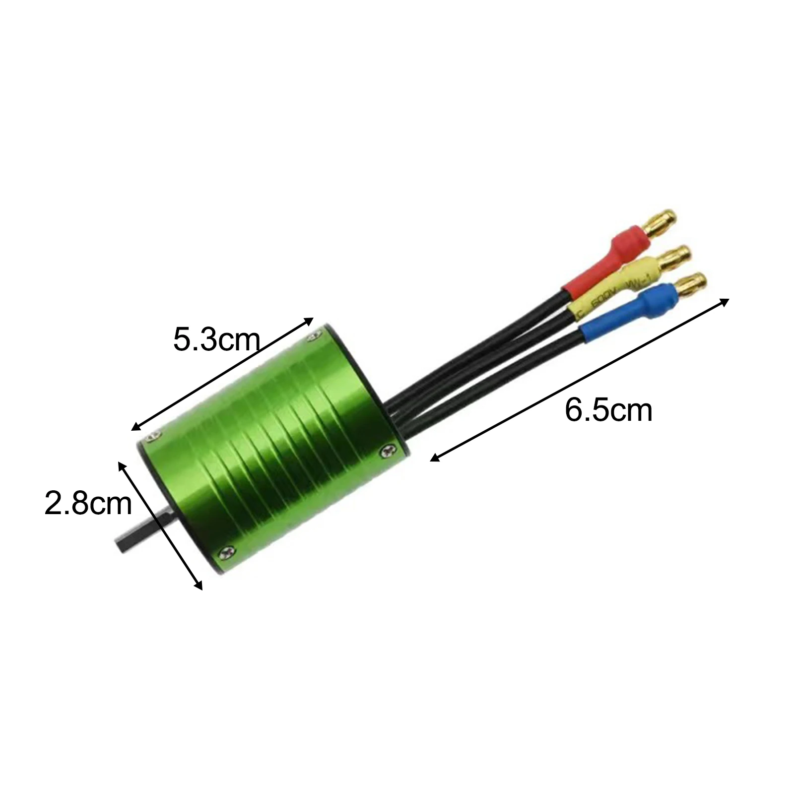 - The motor measures 5.3 cm in length and 2.8 cm in diameter, with a shaft core length of 1.3 cm, perfect for high-speed RC racing applications.