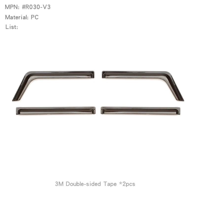 Imagine giving your 1/10 scale RC crawler the perfect finishing touch with this sleek, black plastic rain block. Designed specifically for models like the Traxxas TRX4 Defender and AXIAL SCX10, it seamlessly integrates into your vehicle’s windows, providing a realistic rain protection appearance. The smooth, minimalist design features clean lines and geometric shapes, elevating the overall style of your crawler. Easy to install using the included 2mm wide 3M double-sided adhesive tape and screws, this accessory offers a hassle-free upgrade. Its durable plastic construction ensures long-term use, giving your RC setup a more authentic, rugged look that enhances both aesthetics and realism on any terrain or display shelf.