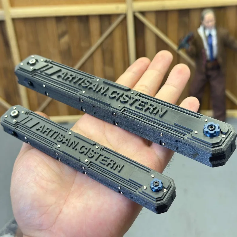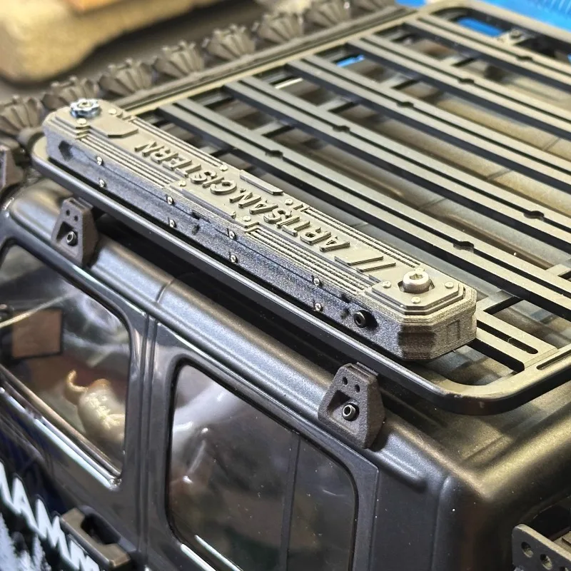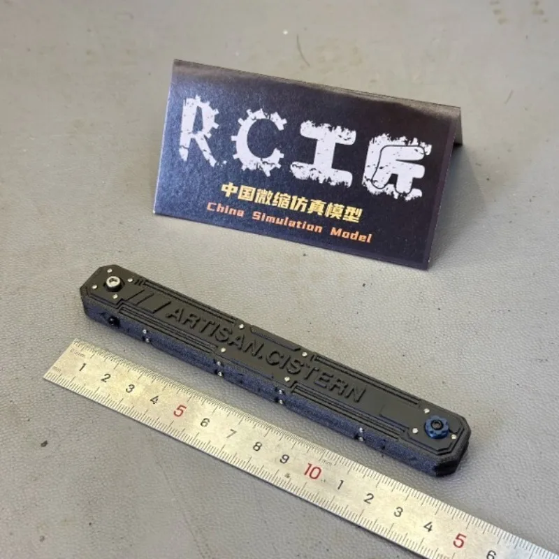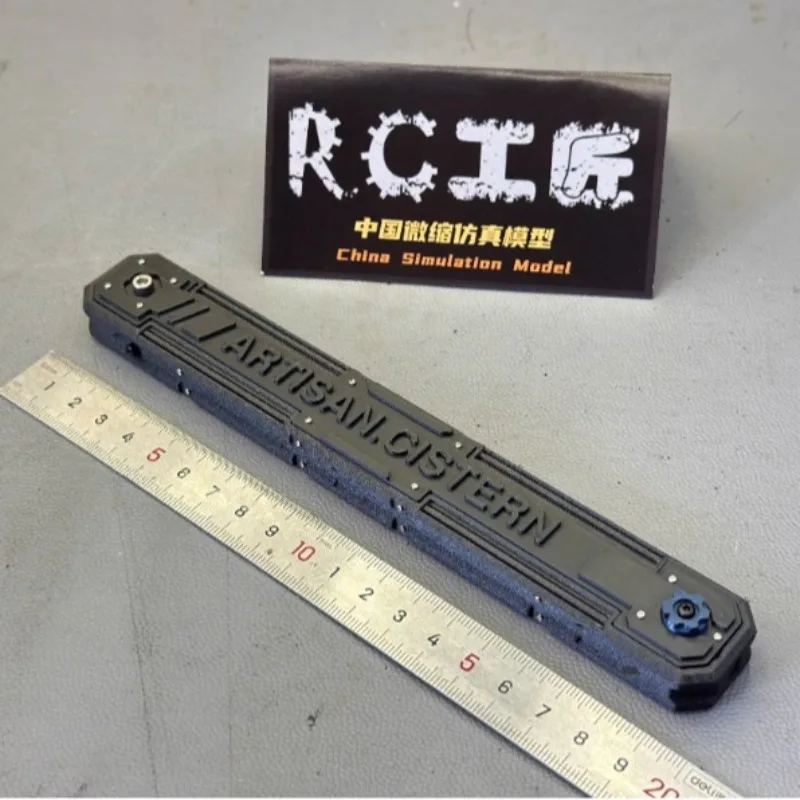 Enhance your off-road RC crawler with this sleek black roof water tank, designed for 1/8 and 1/10 scale models. Crafted from lightweight mixed fiber carbon and ABS, it measures 198mm x 27mm for 1/8 scale and 146mm x 20mm for 1/10 scale, offering a durable, modern aesthetic with textured ridges and embossed text. The tank features subtle blue metallic accents at the mounting points, seamlessly fitting onto Traxxas and similar vehicle models. Easy to install using double-sided adhesive, glue, or screws, it is ideal for hobbyists aged 14 and above looking to personalize and upgrade their four-wheel drive RC cars with a rugged, minimalist accessory.