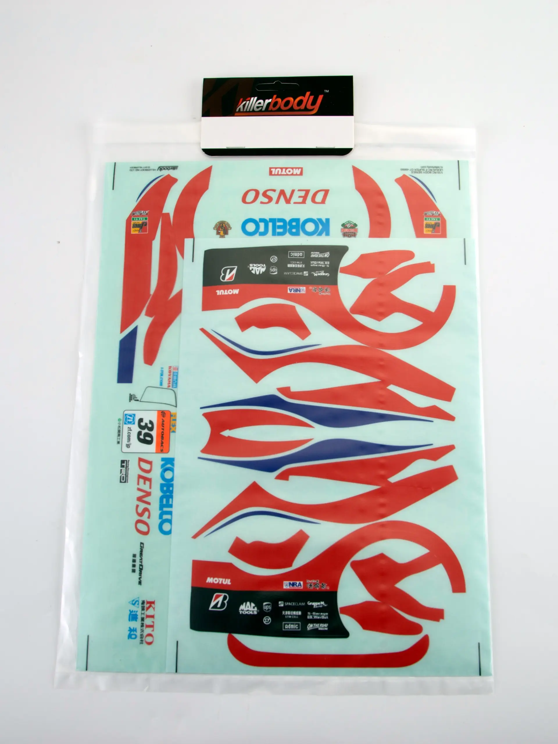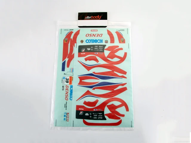 Enhance your 1/10 scale RC DENSO KOBELCO SARD RC F vehicle with this vibrant decal sheet featuring multi-color, race-inspired graphics. Crafted from high-flexible polycarbonate vinyl with a glossy finish, it offers durability, vivid color retention, and a sleek, professional look. The decals include bold logos, racing numbers, sweeping side stripes, and aerodynamic graphic elements designed to evoke speed and aggression. Perfectly sized for RC shells, chassis, wings, and body parts, this easy-to-apply set ensures a custom, high-performance appearance that will turn heads on the track, making your RC car stand out with style and precision.