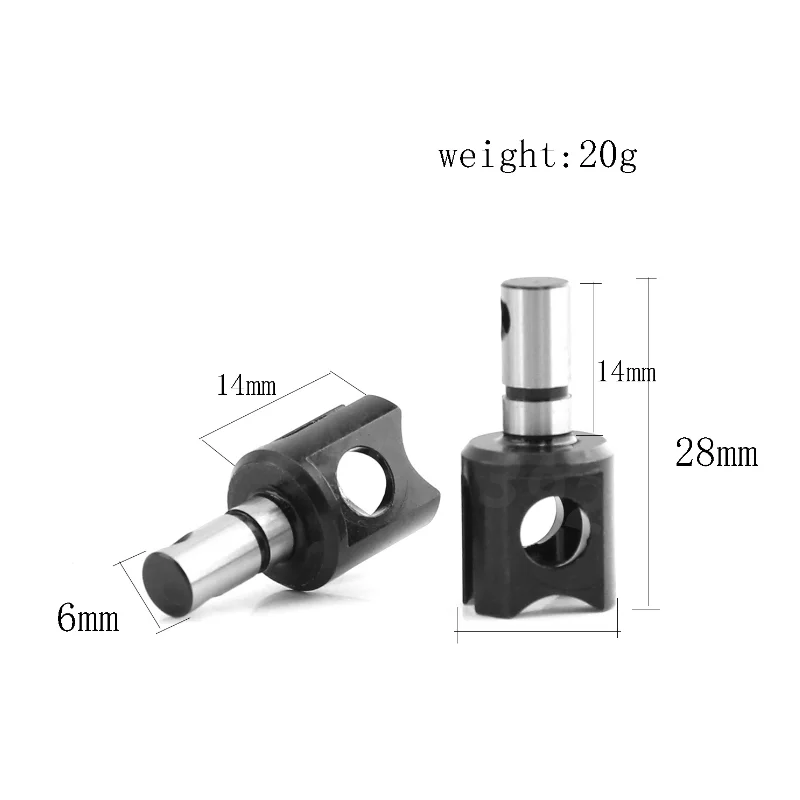 - Technical specifications include: two metal differential cups, each weighing 20 grams, with polished metallic shafts, tailored for 4WD RC models, featuring screw assembly.