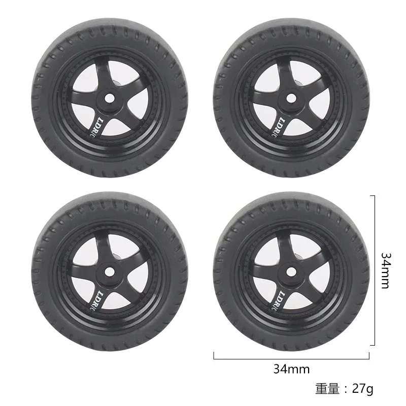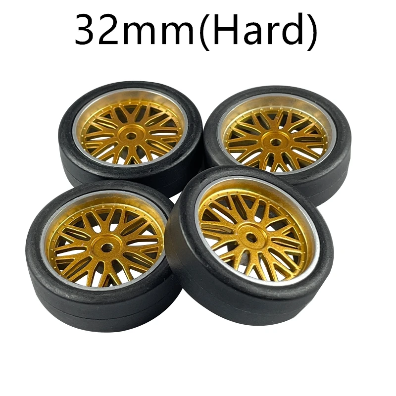 Experience precision and style with this set of four 33mm RC drift tires designed for 1/18 scale remote control cars. Crafted from high-quality plastic, these tires feature textured, grooved treads that provide excellent grip and control during drifting. Available in multiple colors—black, silver, white, and yellow—and hardness levels, including soft and hard compounds, these tires offer customizable options for different driving styles. The sleek multi-spoke rims in white, black, gold, and silver add a visually striking touch to your RC vehicle’s appearance. Light yet durable, each set weighs approximately 24 grams, ensuring optimal performance without adding unnecessary weight. Perfect for upgrading your RC car, boosting its aesthetic appeal, and elevating your drifting experience.