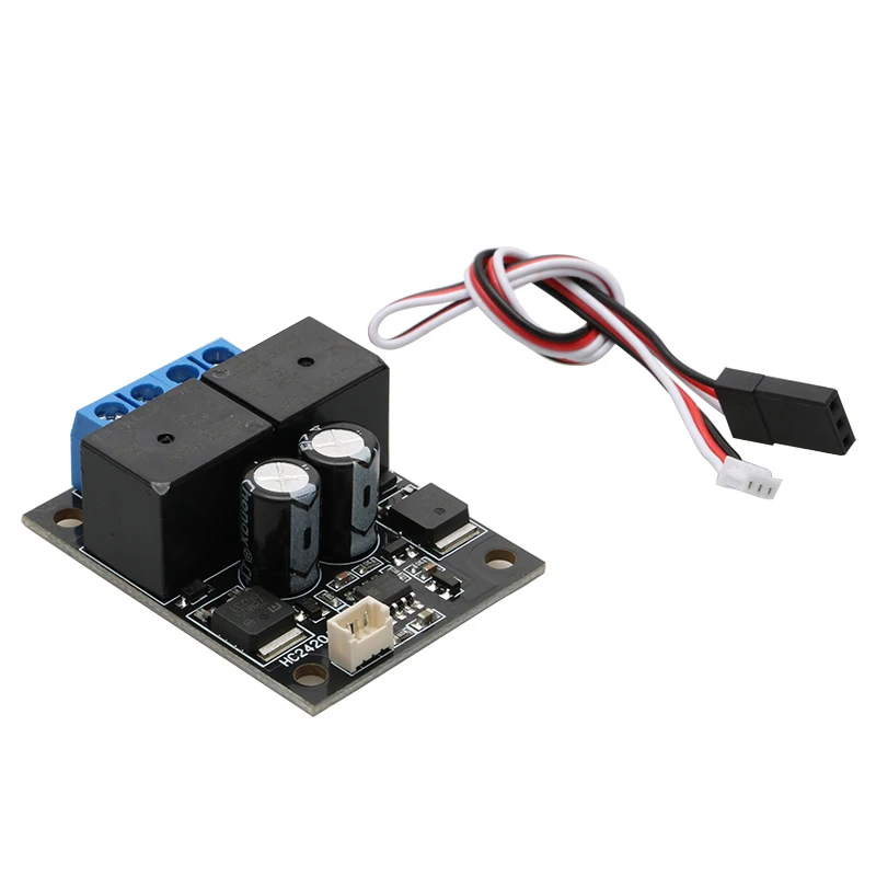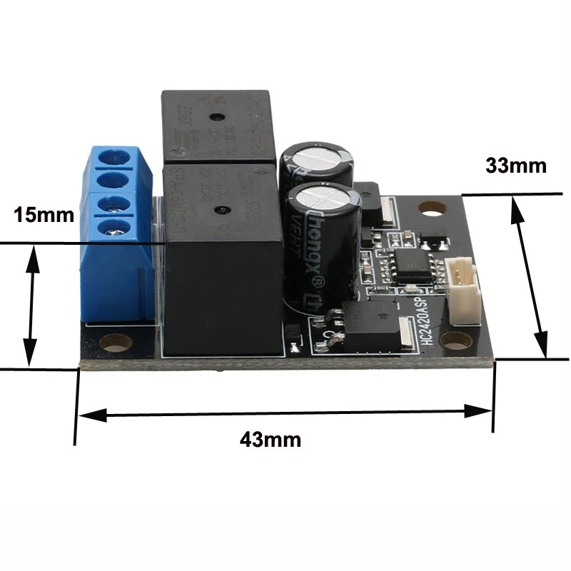 Experience seamless control with this high-quality two-way driver module designed specifically for RC aircraft and remote-controlled vehicles. With support for a voltage range between 7V and 28V, it delivers reliable power to your brushed DC motors, enabling forward and reverse rotation. Its compact size of approximately 43x33x15mm ensures easy installation in tight spaces, while the 20cm signal wire provides flexible setup options. The module features dual large black relays rated for 20A, offering robust switching capabilities. A bright blue terminal block ensures secure electrical connections, complemented by a white connector port for control signals. This durable, modern-looking control unit enhances your vehicle's responsiveness and performance, giving you confidence in your remote control operation.