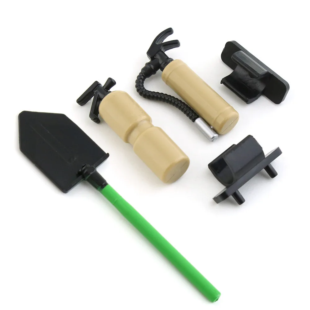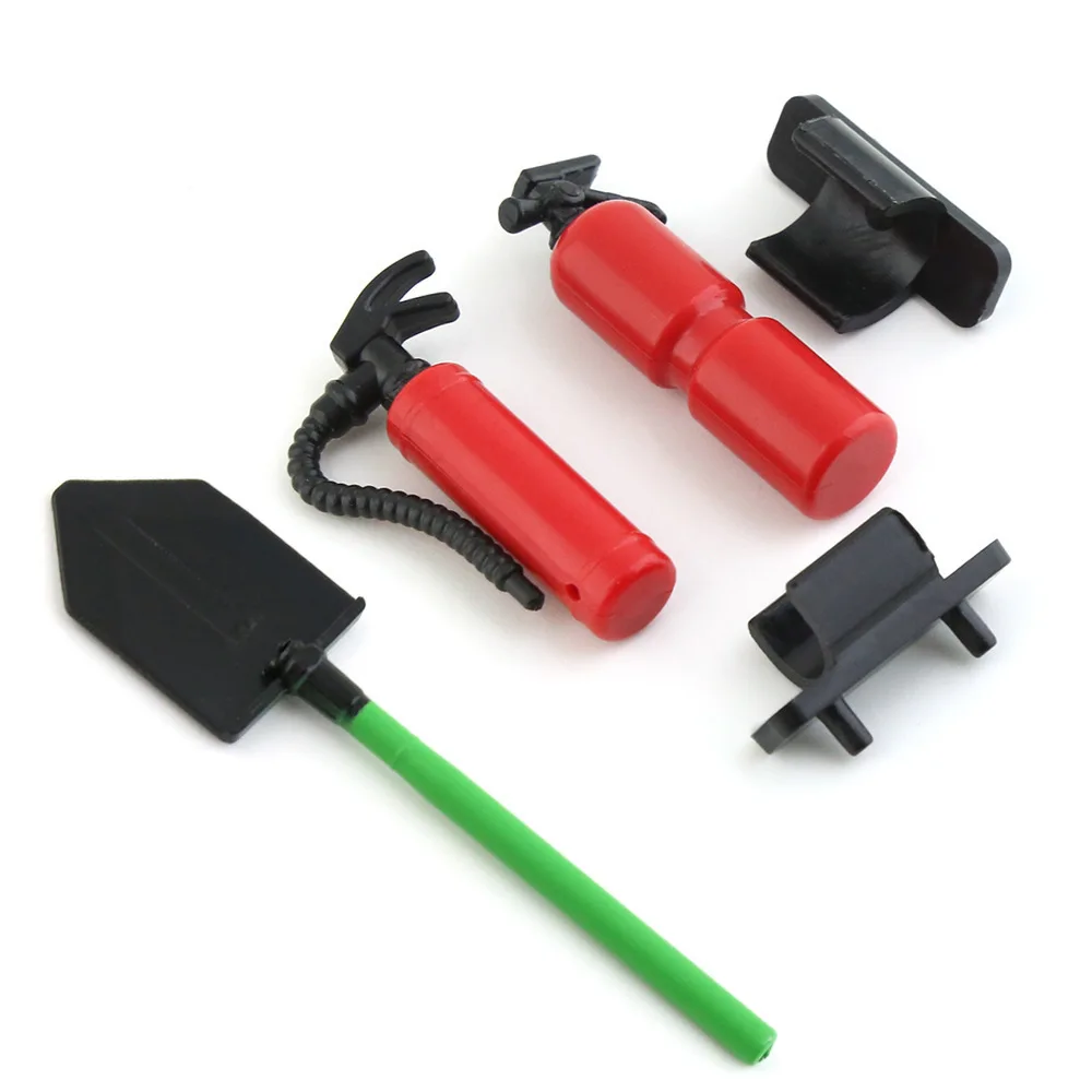 - Includes one fully assembled fire extinguisher and military shovel, ideal for enhancing the visual appeal of 1/10 scale models like TRX4, TRX6, SCX10, and D90.