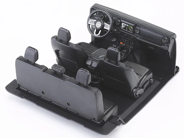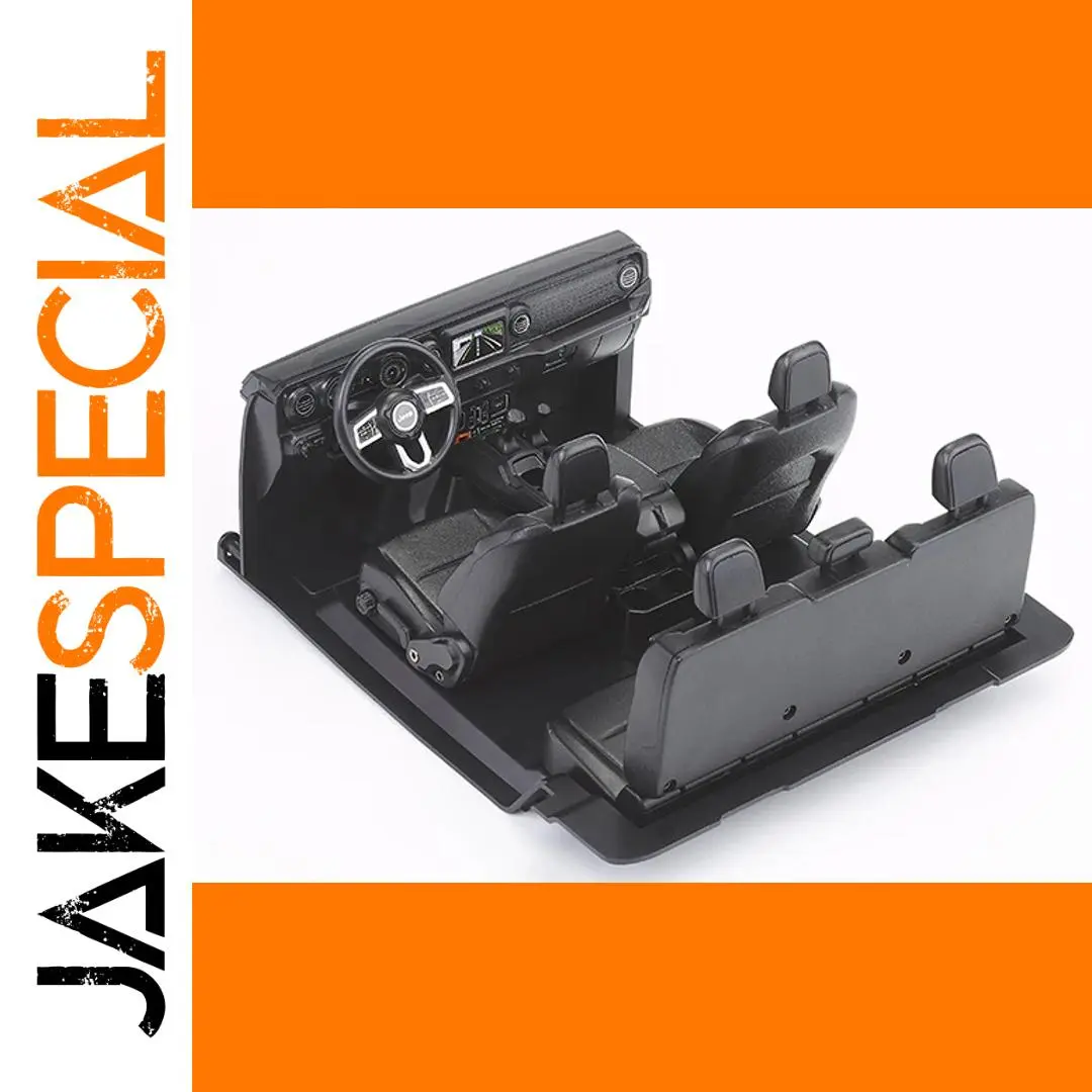 Transform your 1:10 scale remote control Jeep Gladiator Rubicon with this meticulously crafted cockpit set. Made from durable black ABS plastic, it offers a highly detailed interior that closely resembles a real off-road vehicle. The set includes a left and right dashboard with embedded digital display areas, an adjustable ABS seat featuring realistic support contours and headrests, and a rotary steering wheel designed for functional movement. Additional components such as gear shifter, hand brake, clutch, accelerator, and brake pedals replicate actual vehicle controls. A lighting panel, PC painted lenses, decal sheet, and an accessories bag provide customization options and authentic finishing touches. This upgrade not only enhances visual appeal but adds a new layer of realism to your RC vehicle.