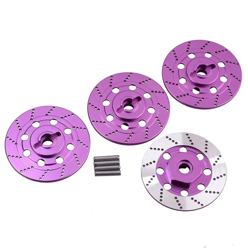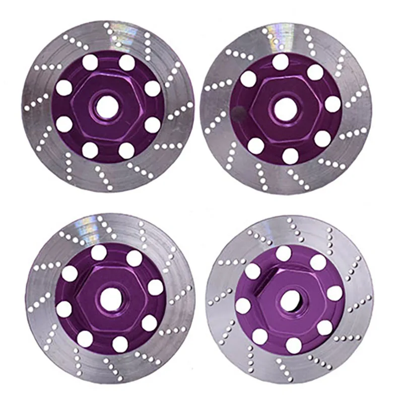 Transform your 1/10 RC car with this set of four metal brake disc wheel rim adapters, featuring a sleek, modern design and durable aluminum alloy construction. With a smooth, polished finish, these adapters showcase a contemporary aesthetic through a palette of vibrant colors including silver, purple, red, black, green, gold, blue, titanium, and sky blue. Each weighs approximately 13 grams and includes a 12mm size compatible with popular models like Tamiya TT01, TT02, HPI, HSP, Sakura D4, and similar vehicles. Designed for high-performance off-road, monster trucks, and racing cars, they combine robust functionality with precise engineering—perfect for enthusiasts aiming to enhance their vehicle's look and performance effortlessly.