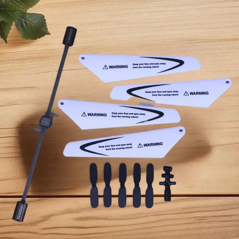 Experience seamless performance with this this RC mini helicopter balance bar set, designed to enhance the stability and functionality of your favorite remote control aircraft. Crafted from durable, lightweight ABS plastic, these parts are precisely engineered for compatibility with popular models like S5-N, W5, and W25. The aerodynamic blades feature bold black graphics and safety warnings for secure operation, combined with a sleek white finish that complements any upgrade or repair. The set includes a robust metal shaft with polished surface and black caps, ensuring smooth rotation and support. Whether upgrading or repairing, this set provides reliable, high-quality components that promise to keep your RC helicopter flying steadily and efficiently.