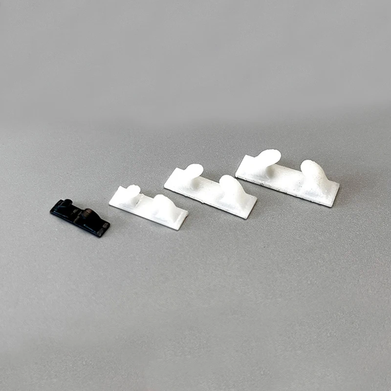 - Hooks are available in various colors: black (No.1) and white (No.2, 3, 4). Their glossy resin surface offers a sleek, polished look that enhances model authenticity and visual appeal.