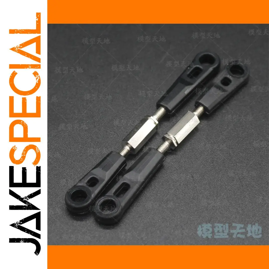 Experience the perfect fit and reliable performance with this set of two front and rear links designed for 1/10 scale 4WD RC monster trucks. Crafted from high-quality plastic with a matte finish, these components ensure durability during intense off-road adventures. The sleek black rods feature rounded ends with precise holes for easy attachment, while stainless steel threaded shafts provide strength and stability. Compatible with popular models like Bigfoot, these links are essential upgrade parts for enhancing your vehicle's suspension and control. With a clean, industrial-inspired aesthetic, they seamlessly blend functionality and rugged design, giving your RC car a professional look and improved performance on the trail or track. These links are a perfect upgrade for enthusiasts who want durability and precision.