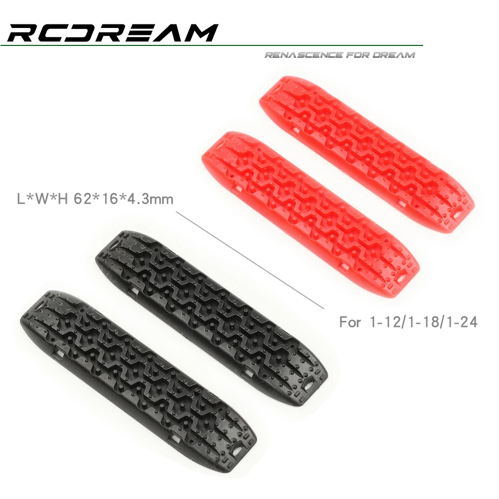 Imagine confidently navigating difficult terrains with this vibrant set of RCDream Sand Ladders, designed specifically for 1/18, 1/24, and 1/12 scale remote control cars. Crafted from durable plastic, these recovery boards feature bold, vivid colors such as bright red, black, vivid yellow, crisp white, and royal blue, making your vehicle stand out while ensuring practicality. The textured surface with raised, rounded bumps and zigzag grooves provides superior grip, mimicking real car anti-skid plates. The back side boasts an anti-slip pattern with small, raised bumps to guarantee stability on uneven surfaces. Perfect for off-road adventures, these boards are an essential upgrade for your RC model, combining aesthetic appeal with reliable performance.