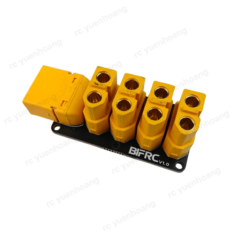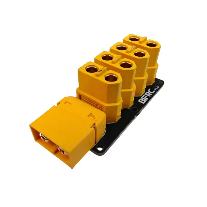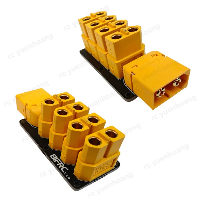 - Includes four yellow XT60 connectors, each with circular connection holes and rectangular bases, designed for secure and reliable wire connections.