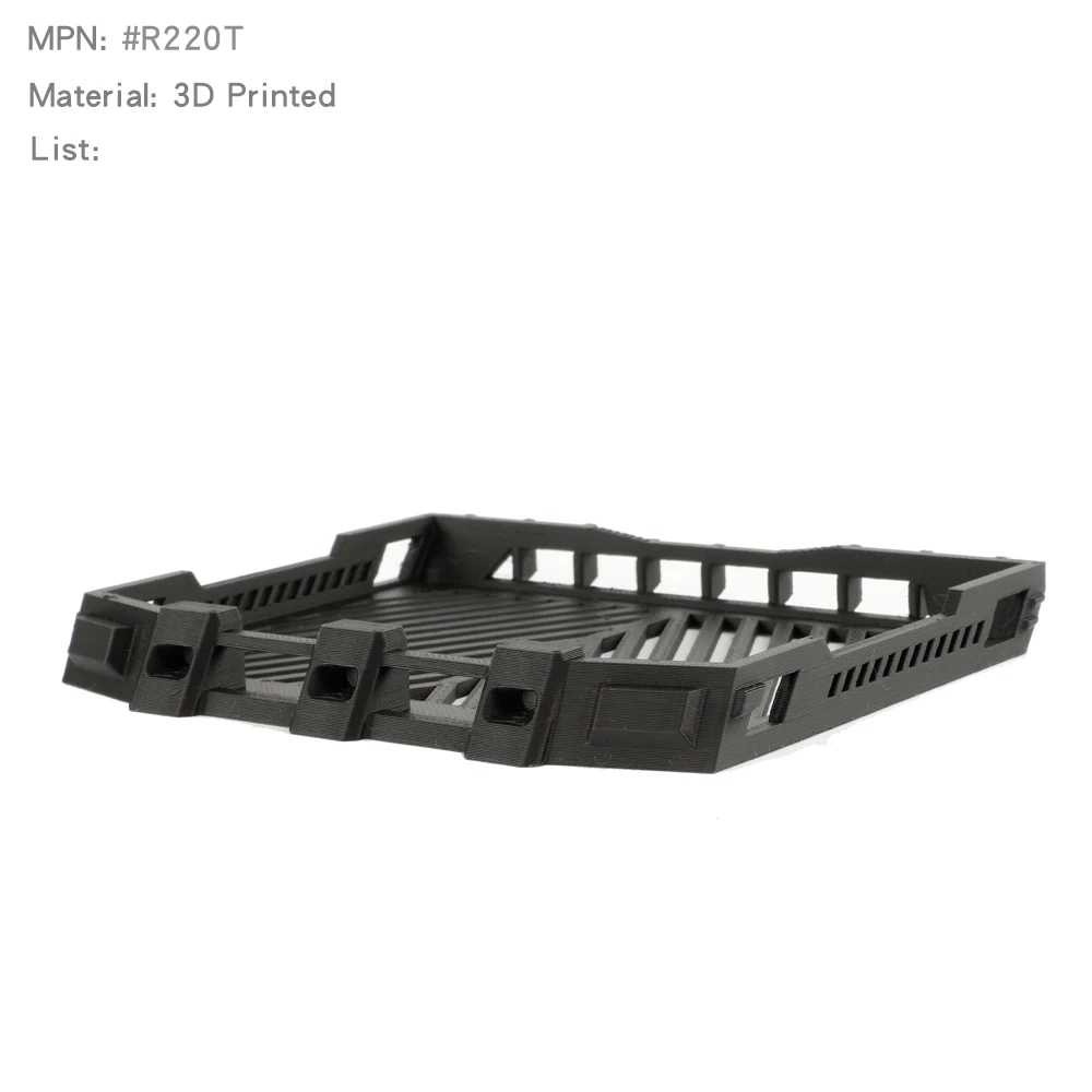 Enhance your RC car with this durable 1/12 scale roof rack, designed specifically for MJX H12Y models. Crafted from quality plastic, it measures 180mm x 100mm x 40mm and weighs 70g in the R220S variant or 80g in the R220T. Its sleek black finish features an open-frame design with support ribs for a lightweight, sturdy appearance, while the grid-like bottom offers added robustness. Easy to install with the original screws, it can seamlessly integrate with LED light sets for a customized look. Available in R003-50, R220S, and R220T, this accessory elevates the aesthetic and functional appeal of your RC vehicle.