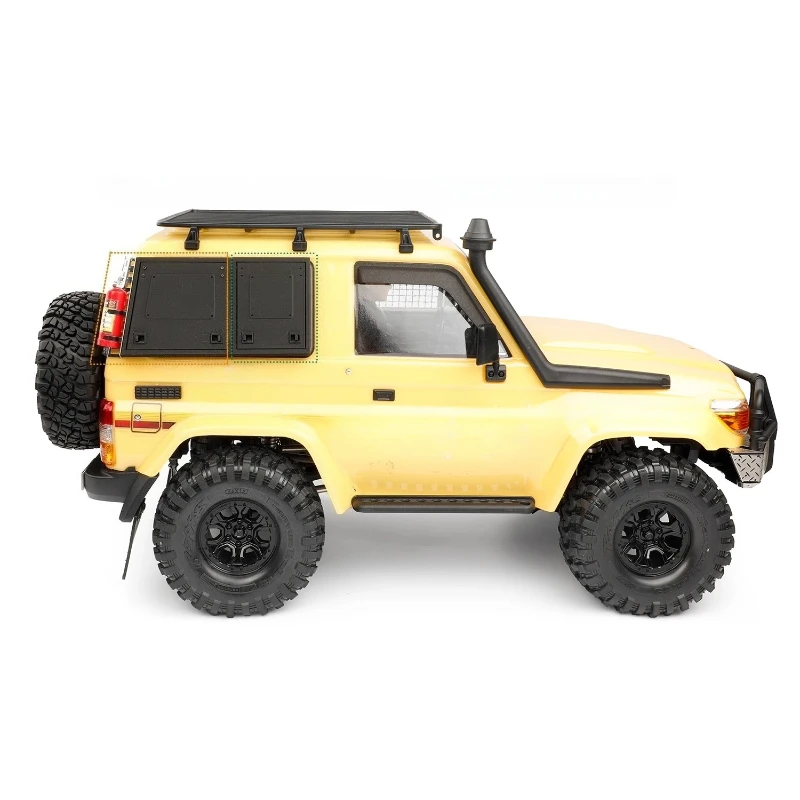 - Includes one pair of side window compartments with detailed ridges and removable panels, mimicking real side storage units on off-road vehicles for added authenticity.