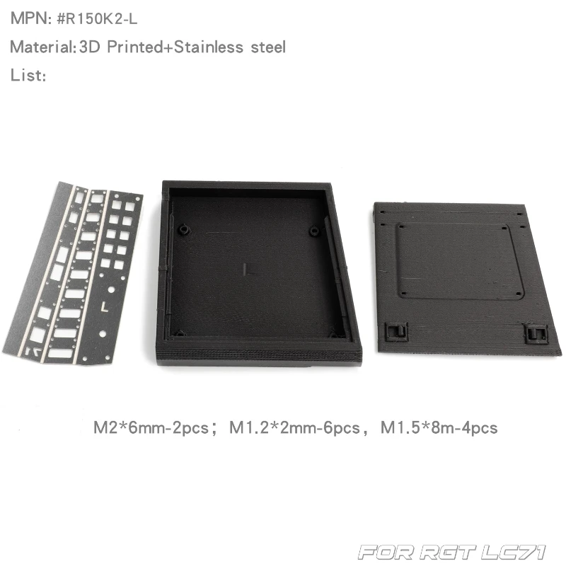 Transform your 1/10 scale RC vehicle into a more authentic and rugged model with this detailed simulation side window toolbox set. Crafted from durable 3D printed plastic combined with metal accents, these accessories replicate real storage compartments, featuring sleek black or silver finishes that seamlessly complement your RC car's aesthetic. The rectangular compartments include subtle ridges and indentations, providing a highly realistic appearance. Compatible with models like the RGT EX86020 Invader LC71, they are easy to install using the included screws or premium 3M double-sided tape. Enhance your vehicle’s realism and functionality with these meticulously designed components, perfect for seasoned RC enthusiasts who value detail and durability in their upgrades.