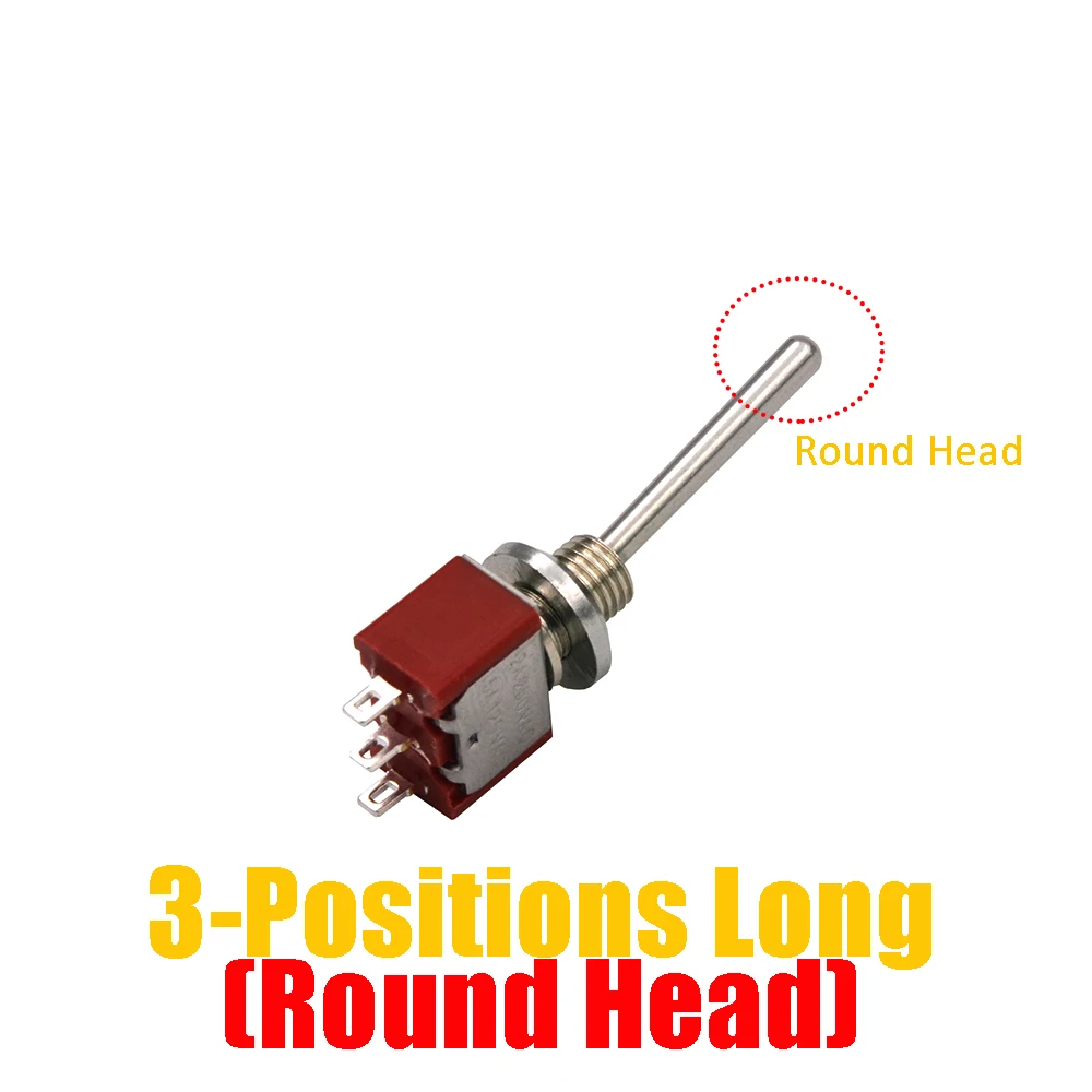 - Features different switch styles: 1-position spring back, 2-position long, 3-position long with round or flat handles, and 3-position short with two-sided spring mechanism, ensuring versatility.