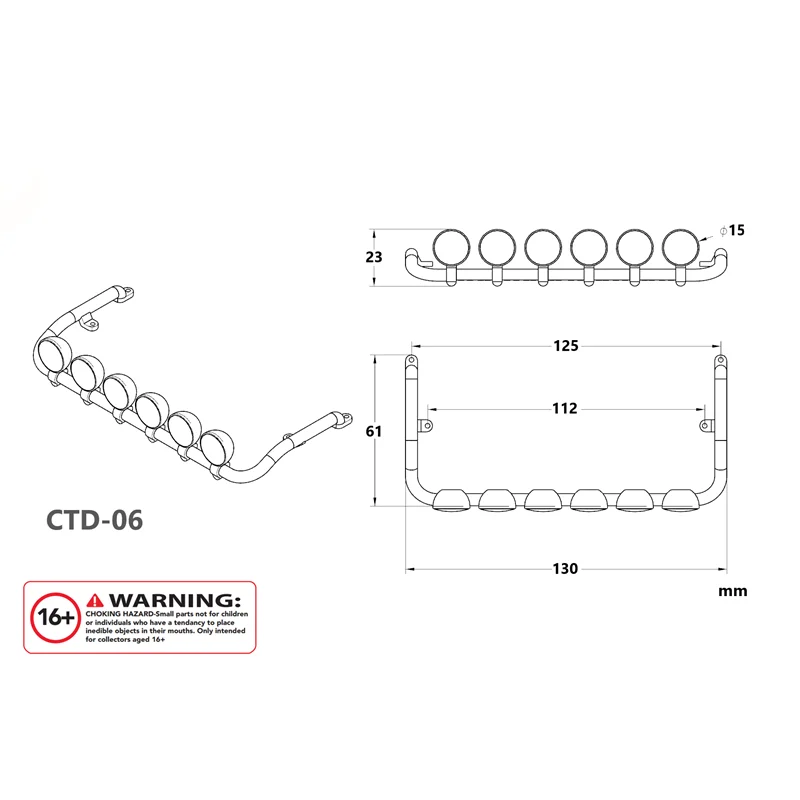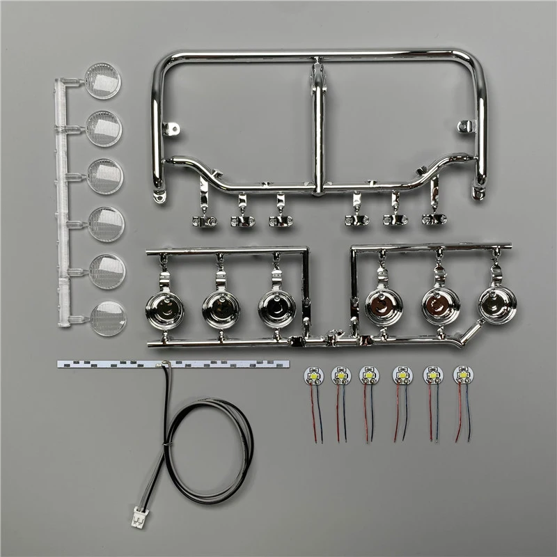 Transform your 1/14 scale Tamiya RC truck with this beautifully crafted LED dome light kit. The sleek, silver plastic assembly adds a modern, reflective touch that elevates your model’s appearance. Designed with a minimalist yet sophisticated aesthetic, the kit features smooth, rounded rectangular shapes and a cohesive metallic finish, creating an industrial elegance. The clear LED modules with transparent lenses provide crisp illumination (with or without LEDs), contrasting with vibrant wires for an eye-catching effect. Perfectly suited for models like Tipper, Scania 770S, MAN, Benz, and Actros 3363, this kit is a stunning upgrade that enhances realism and style. Easy to install, it’s ideal for seasoned hobbyists or newcomers, helping you achieve a professional finish in your RC truck decor.