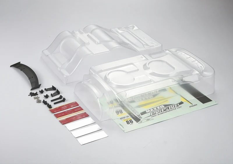 - Includes molded Lexan or PC shells, front/rear spoilers, fog light buckets, sweep wing, and a clear plastic rear wing with mounts for enhanced aerodynamic styling.
