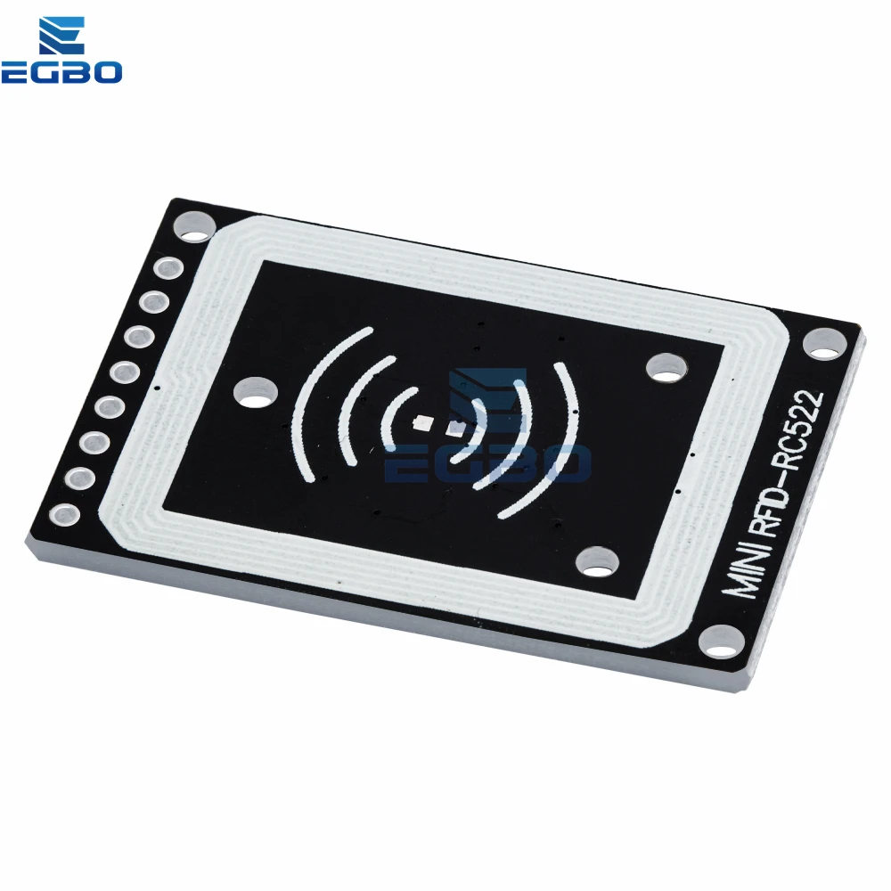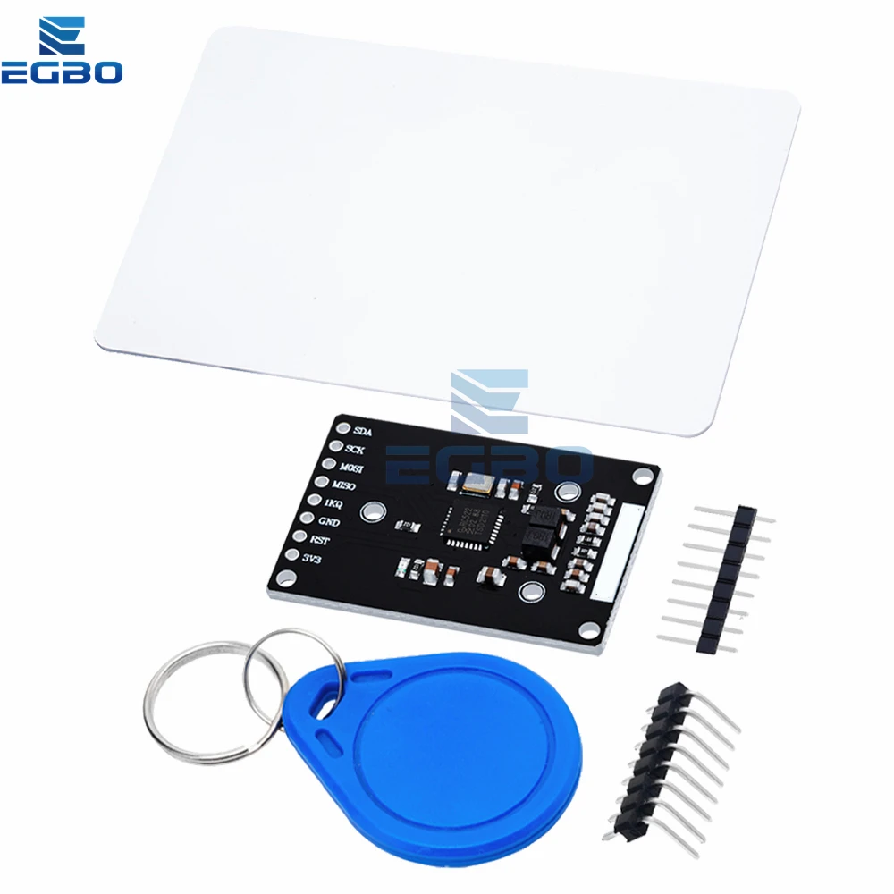 Experience seamless proximity detection with this RC522 Mini RFID module kit, operating at 13.56 MHz with a range of approximately 6 cm. Designed with a sleek matte black rectangular body, each module features a compact SMD package and supports a 3.3V supply voltage with zero dissipation power. The kit includes neatly arranged black pin headers for easy connection to microcontrollers such as Arduino UNO or MEGA. A vibrant blue RFID tag enhances functionality, ideal for access control and data transfer projects. Available in packs of 1 or 5 pieces, these modules are built to operate reliably within temperatures from -40°C to 80°C, offering a modern, precise, and efficient RFID solution.
