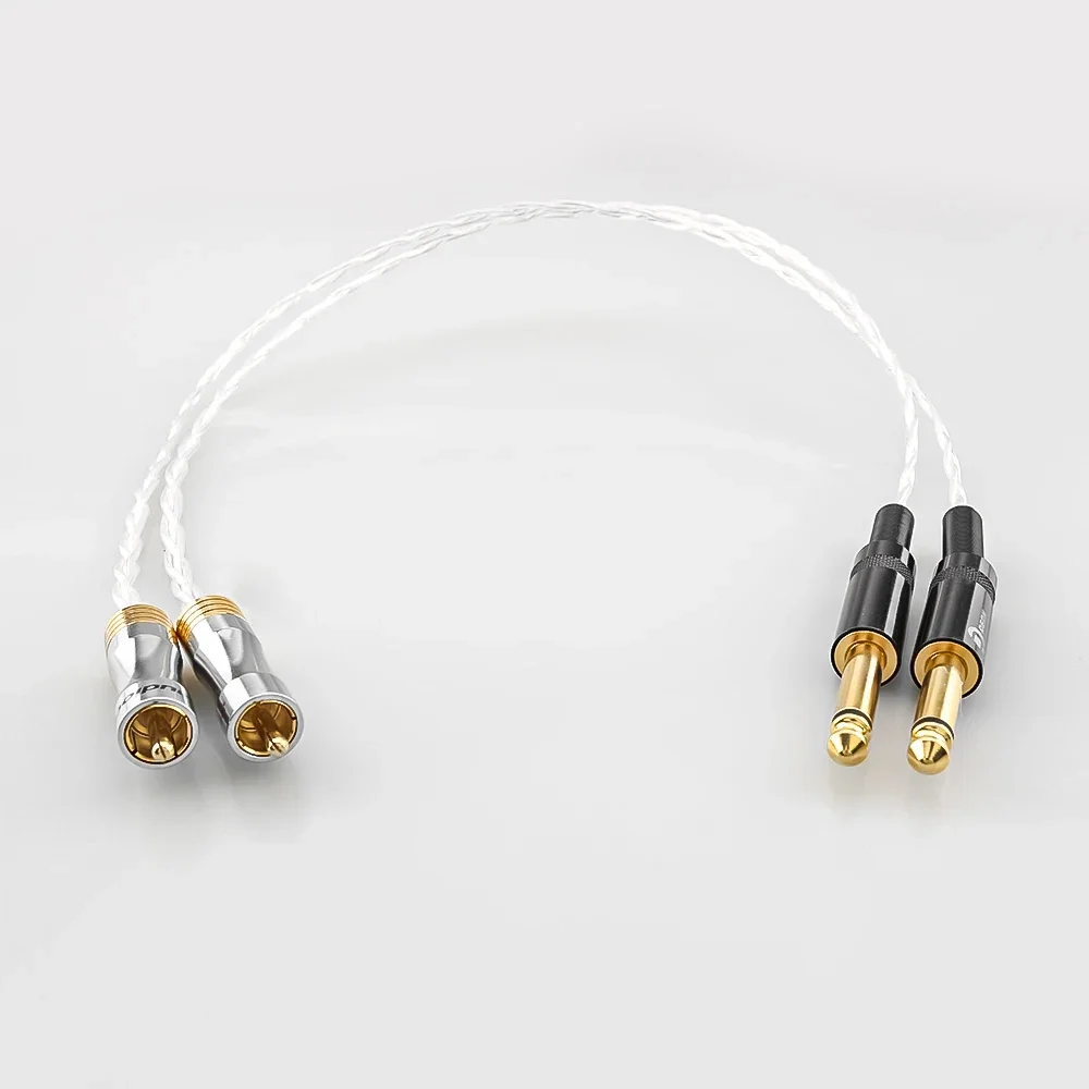 Experience premium audio connection with this high-quality RCA to 6.35mm male interconnect cable, designed for professional and enthusiast use. Featuring a 6mm core diameter, the cable is available in lengths of 0.5m, 1m, 1.5m, 2m, and 3m, and boasts a durable 9mm outer diameter with a PTFE insulator for optimal sound clarity and resilience. The RCA connectors have shiny silver-colored metal casings with gold-plated tips, while the 6.35mm jack connectors feature black textured metal casings with knurled grips and gold-plated tips. The cable’s technical specs include a parallel capacitance of 51 pF/m, series inductance of 0.71 μH/m, and a DC loop resistance of 0.065 Ohm/m, making it suitable for connecting DVD players, amplifiers, and MP3/MP4 devices for high-fidelity audio transmission.