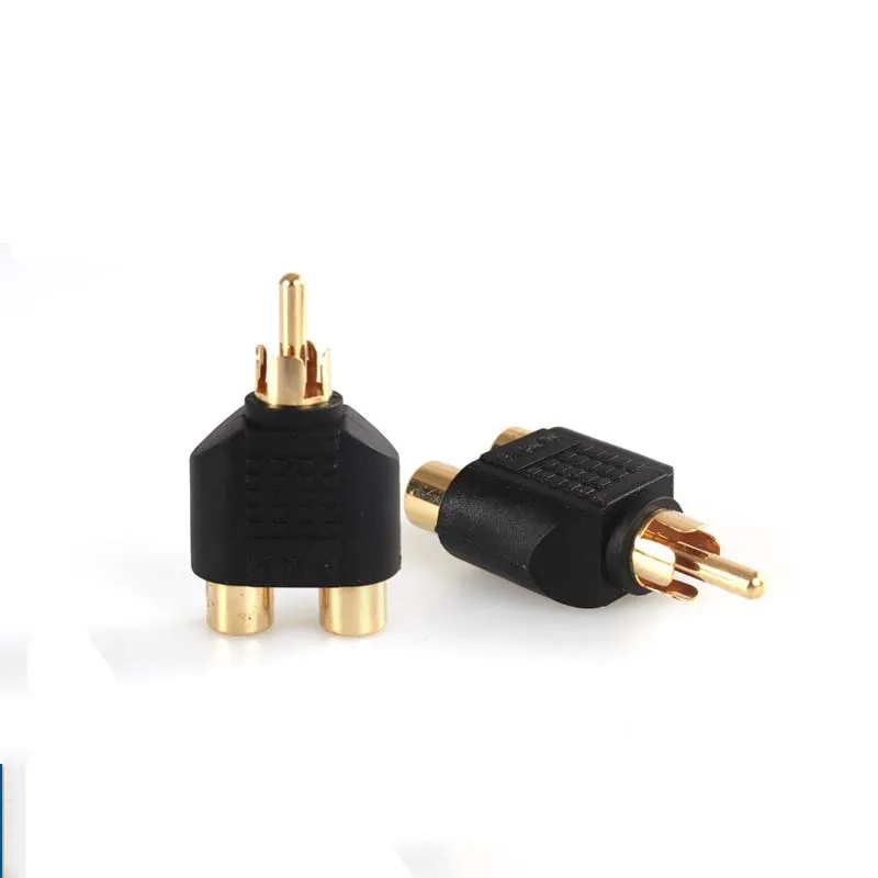 Enhance your audio and video setup with this 2-pack of RCA Y-splitter adapters, featuring one male RCA input and two male RCA outputs. Crafted with durable nickel-plated connectors for reliable conductivity, each compact adapter measures 44mm x 25mm x 11mm and weighs just 10 grams. Designed for seamless connectivity with smart devices and standard audio/video equipment, these functional and sleek adapters allow you to effortlessly split signals, ensuring high-quality sound and picture performance. Their minimalist black housing combined with shiny gold connectors offers a professional aesthetic, making them an essential addition to your multimedia setup.