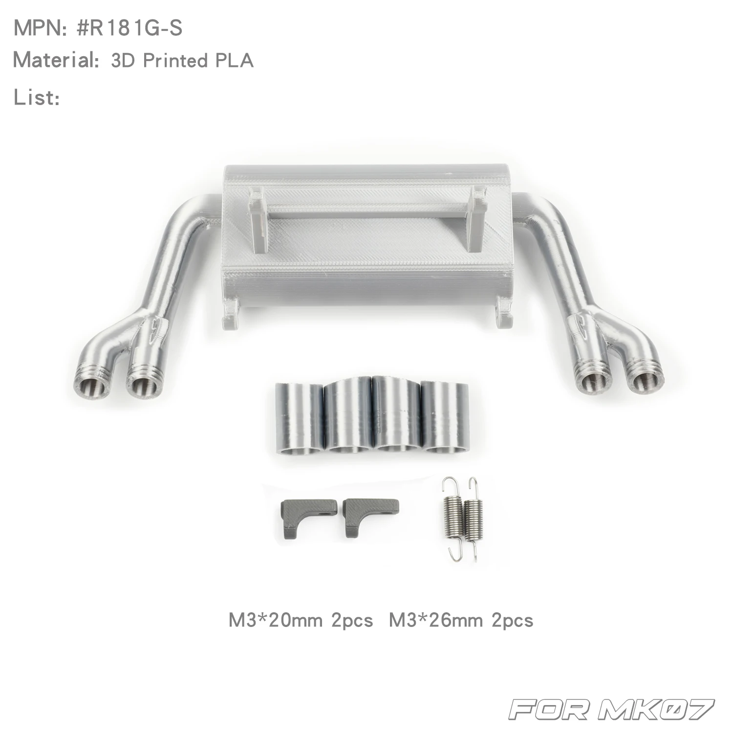 Enhance your vehicle’s durability and sleek appearance with this set of upgrade components, including a protective net and exhaust pipe parts compatible with MK07 and JK07 models. The #R181E tail light cover, made from thickened nylon, features a rugged, grid-like design and is available in multiple colors: R181E, R181E-GB, R181E-SS, R181G, R181G-S, and R185G for added customization. The #R181G exhaust pipe fits MK07, while the #R185G is suitable for JK07, all crafted from durable plastic without electrical requirements. These purpose-built, minimalist parts provide both aesthetic appeal and functional protection for your vehicle.