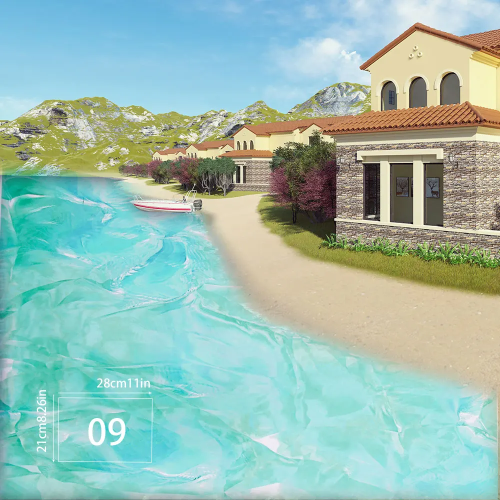 - Made of high-gloss coated paper, providing a shiny and reflective finish that enhances visual depth and realistic water appearance.