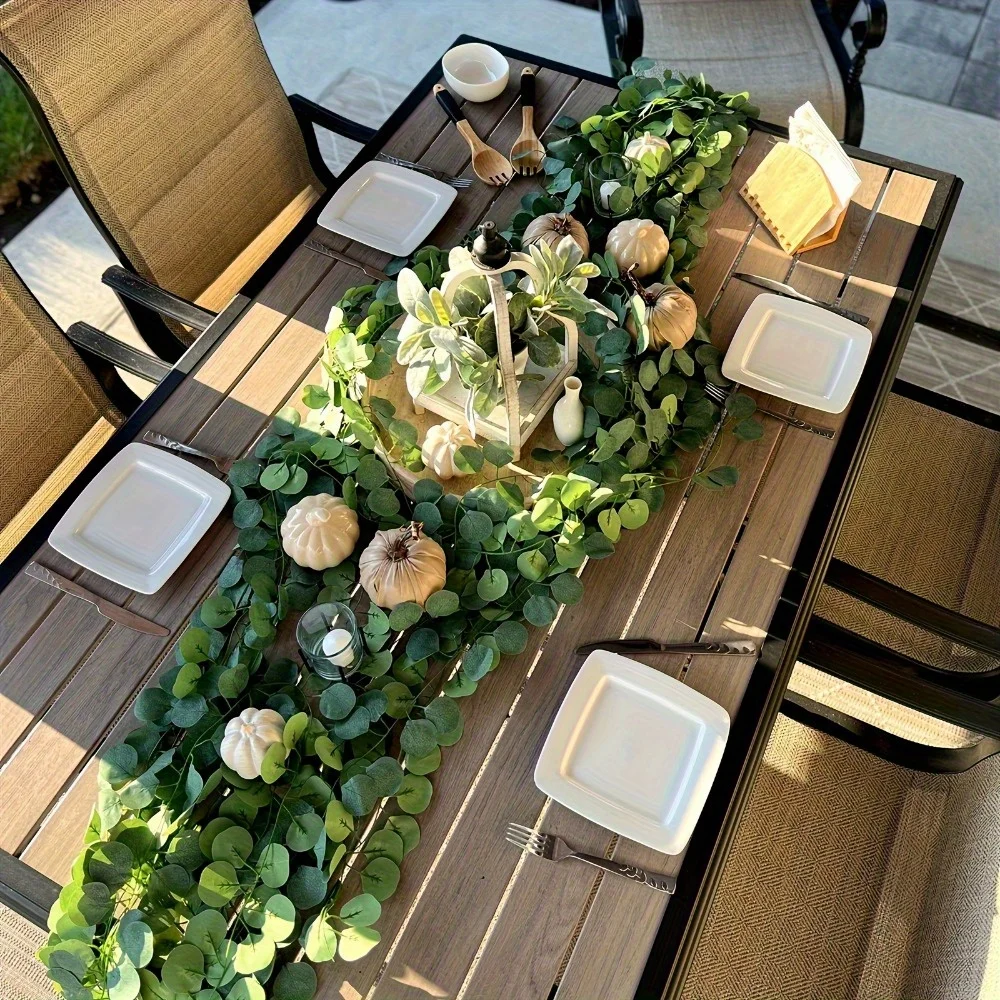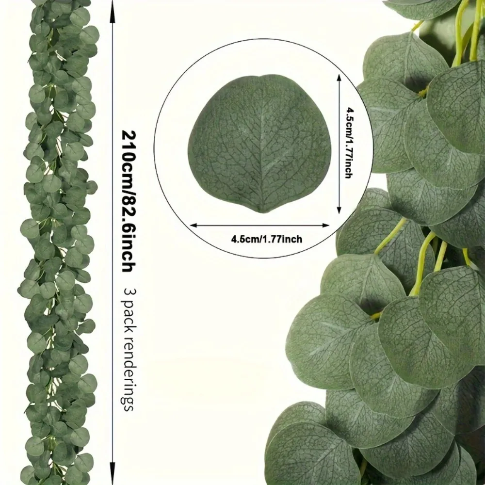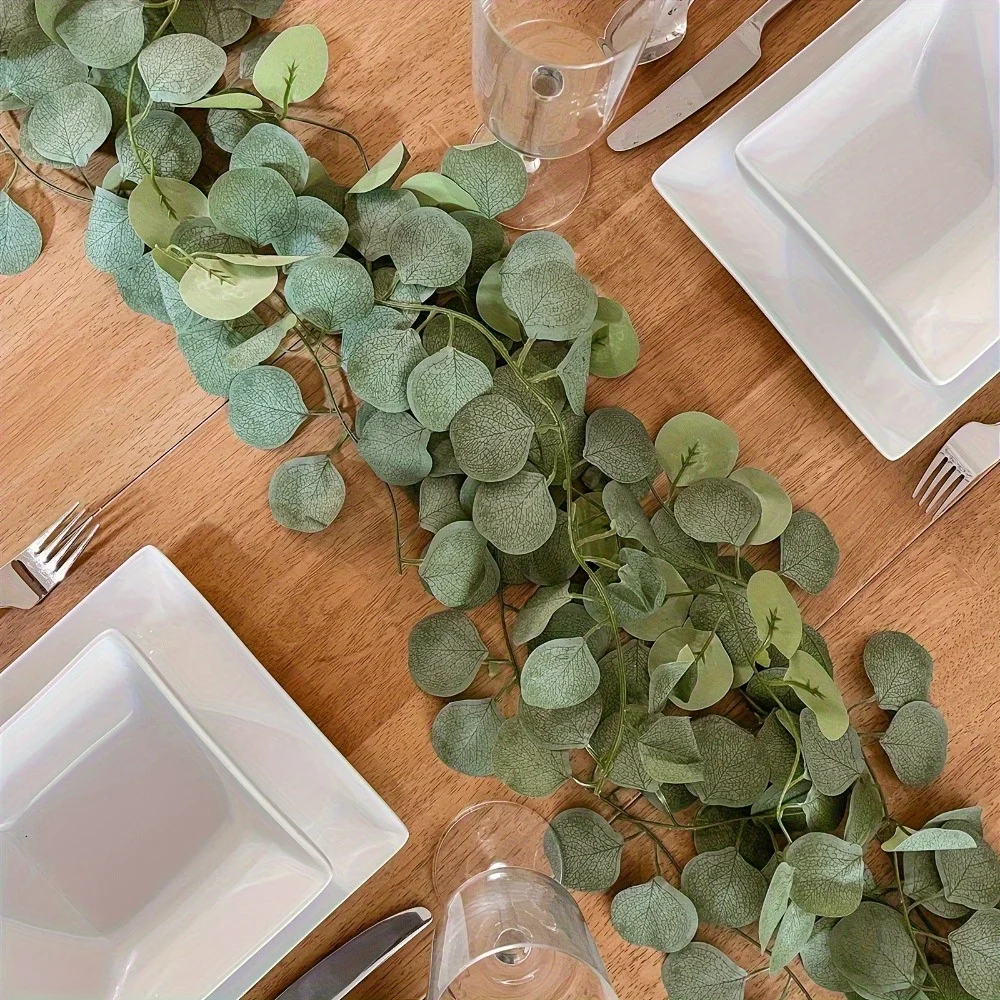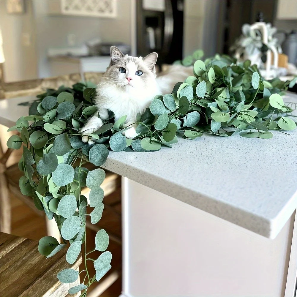 Enhance your decor with this lush artificial eucalyptus garland, featuring dense, vibrant green, round, slightly convex leaves arranged along flexible vine-like stems. Crafted from high-quality plastic for a realistic texture, this classic-style garland is perfect for outdoor wedding decorations, seasonal celebrations like Valentine’s Day, Mother’s Day, and Easter, as well as home accents. Its pliable design allows effortless shaping and draping, creating a fresh, natural look that elevates any setting. Ideal for enhancing tables, fireplace mantels, or furniture, this decorative garland offers an enduring, chemical-free greenery option for versatile indoor and outdoor use.