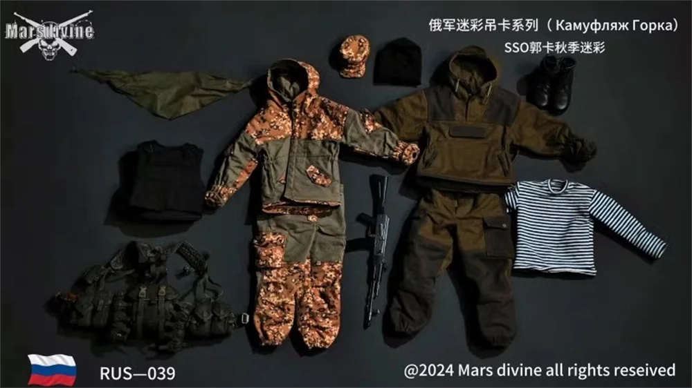 Enhance your collection with this highly detailed 1/6 scale military action figure, measuring approximately 5-15 cm and featuring a no-body, no-head configuration. Dressed in authentic autumn gorka camouflage with shades of tan, brown, and green, the model includes a matching camouflage cap, tactical vests, mounts, a Goka overcoat, bib pants, Sea Soul shirt, leather booties, a black head covering, and a scarf. A realistic plastic AK74 replica completes the rugged military look. Made from durable PVC, this finished display piece is suitable for collectors aged 14 and above, perfect for creating immersive military scenes or showcasing indoor displays.