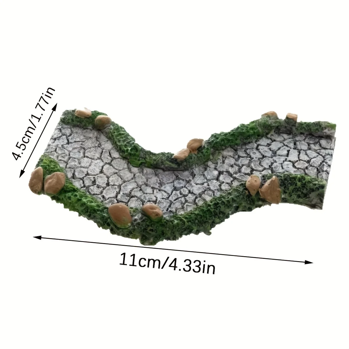 Imagine transforming your miniature landscape with this intricately designed curved stone path. Crafted from durable resin, it features a lifelike textured surface resembling aged, cracked stone in a soothing light gray hue. The tiny rounded rocks along both edges, painted in soft beige or tan, add authenticity, while textured green moss accents bring a lush, natural vibe. Perfect for fairy gardens, landscape dioramas, or model building projects, this single curved segment seamlessly blends into outdoor scenes, elevating their realism. Its versatile design allows for easy customization and integration into your creative setups. Whether you’re a hobbyist or a seasoned model maker, this piece will help you craft stunning miniature environments filled with authentic charm and organic beauty.
