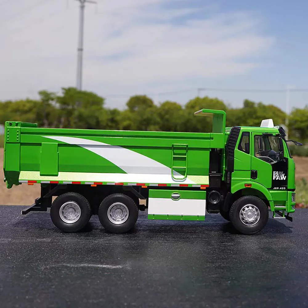 This detailed 1:24 scale die-cast model captures the FAW Jiefang J6P 6×4 dump truck with realistic alloy, plastic, and rubber materials. Featuring a raised turntable, tilting cab, and vibrant “Spot Goods” color, it offers authentic details such as a streamlined design, large windshield, black accents, and realistic wheels. Perfect for collectors and display enthusiasts, this non-electric model measures approximately 1:24 and includes minor surface flaws due to simulated construction, adding to its realistic appeal. Suitable for ages 18 and over, it serves as an impressive gift, static decoration, and hobby piece that brings a lifelike engineering touch to any collection.