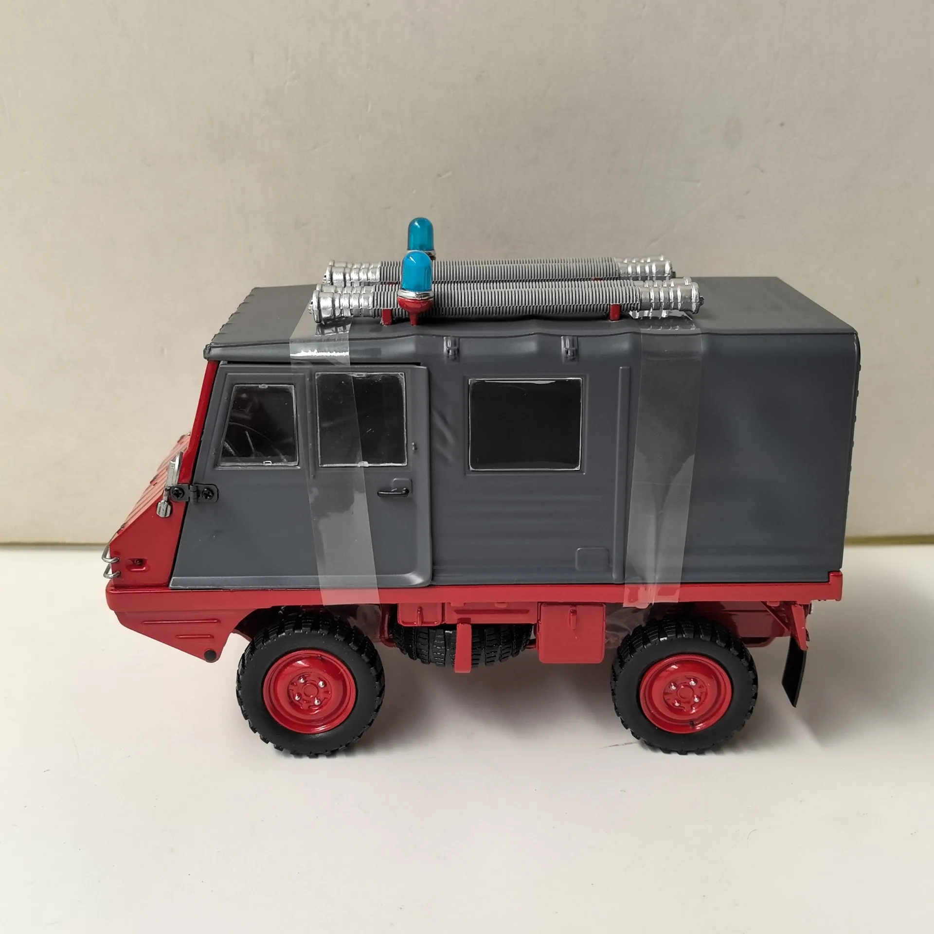 Imagine owning this detailed diecast firefighting vehicle model that instantly adds excitement to your collection. With a vibrant red and black color scheme, it mimics a real emergency response vehicle with extraordinary realism. Crafted from durable metal and plastic, this 1:18 scale model features authentic styling, including a black windshield, clear plastic windows, and detailed headlights and grille. The roof boasts two silver pipes with tiny blue lights, enhancing its functional yet realistic look. The side doors open smoothly, revealing the meticulously designed interior, while the tires with treaded pattern provide an authentic appearance. Perfect for display and collection, this model brings a dynamic, detailed presence to any space.