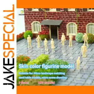 Enhance your architectural models and train layouts with this set of 10 or 100 finished, paintable miniature figurines crafted from durable ABS plastic in a realistic gray hue. Available in scaled sizes from 1:25 to 1:200 (ranging from 0.7 to 7 centimeters), these lifelike figures feature detailed human proportions and natural poses, perfect for micro-landscape scenes, dioramas, or layout detailing. Suitable for ages 12 and above, they are unisex and designed to seamlessly blend into any miniature environment. The sets provide versatile options for customizing your project with easy painting and assembly, bringing authenticity and realism to your miniature worlds.