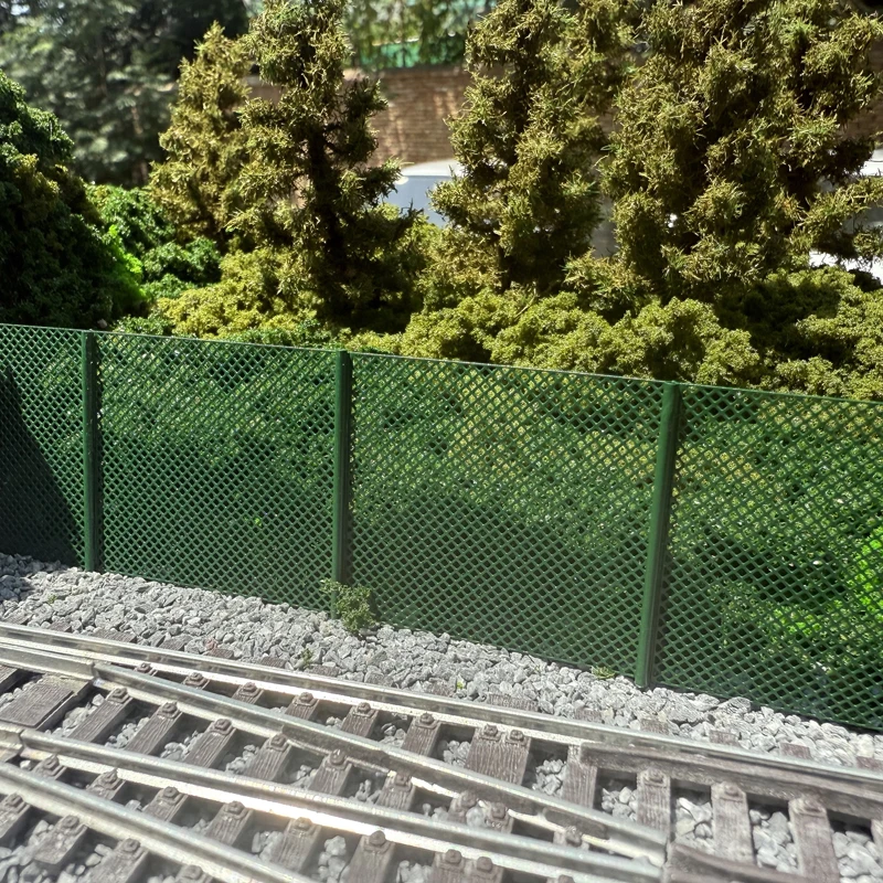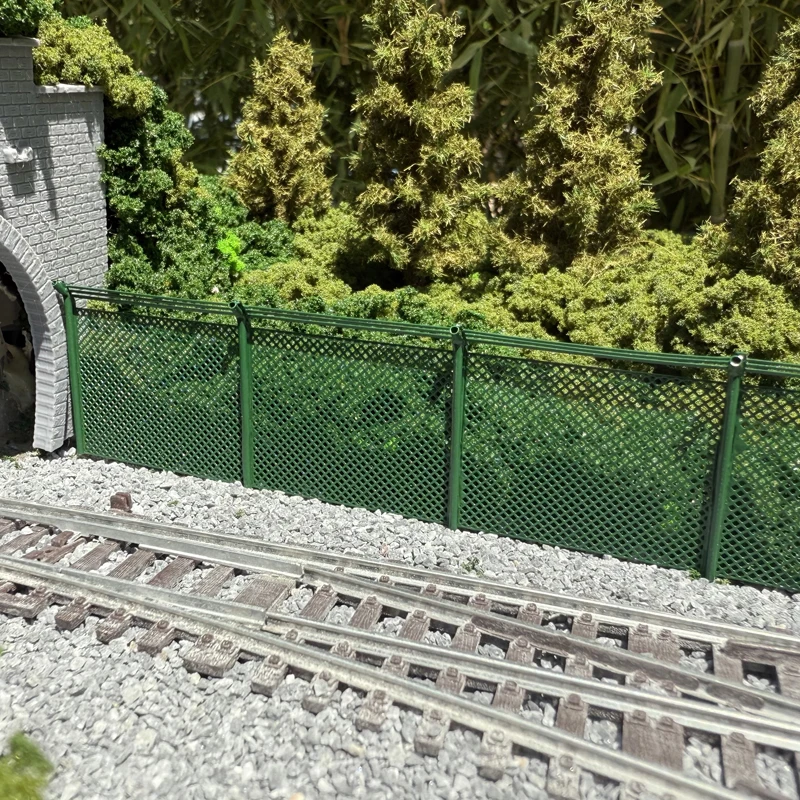 Imagine enhancing your miniature railroad scene with the authentic look of safety barriers and fencing. This detailed model train guardrail by FunTrying adds a touch of realism, featuring a finely crafted green metal lattice that runs parallel along your tracks. Designed for scale models in 1/64 and 1/87, it replicates real-world safety barriers, blending seamlessly with lush foliage and dense landscapes. Durable yet flexible, this guardrail can be bent to fit your layout's contours, giving your scene a realistic and industrial feel. Whether you're creating a city transfer scene or a countryside railway, this guardrail will elevate your layout with its meticulous craftsmanship and authentic appearance.