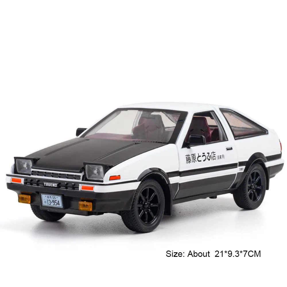 Experience the thrill of owning a highly detailed 1:20 scale car model with a durable metal body, carbon fiber-style accents, plastic chassis, and rubber tires. Available in Dongfeng and AE86 versions, measuring approximately 25.3 x 11 x 12 cm and 21 x 9.3 x 7 cm respectively, this high-simulation diecast toy features functional sound and light effects, a pull-back mechanism, and opening doors for added realism. Crafted in black, white, or dual-tone black-white, it’s powered by button batteries, making it perfect for collectors and enthusiasts aged 14+. Elevate your collection with this impressive, robust miniature designed to impress and inspire admiration.