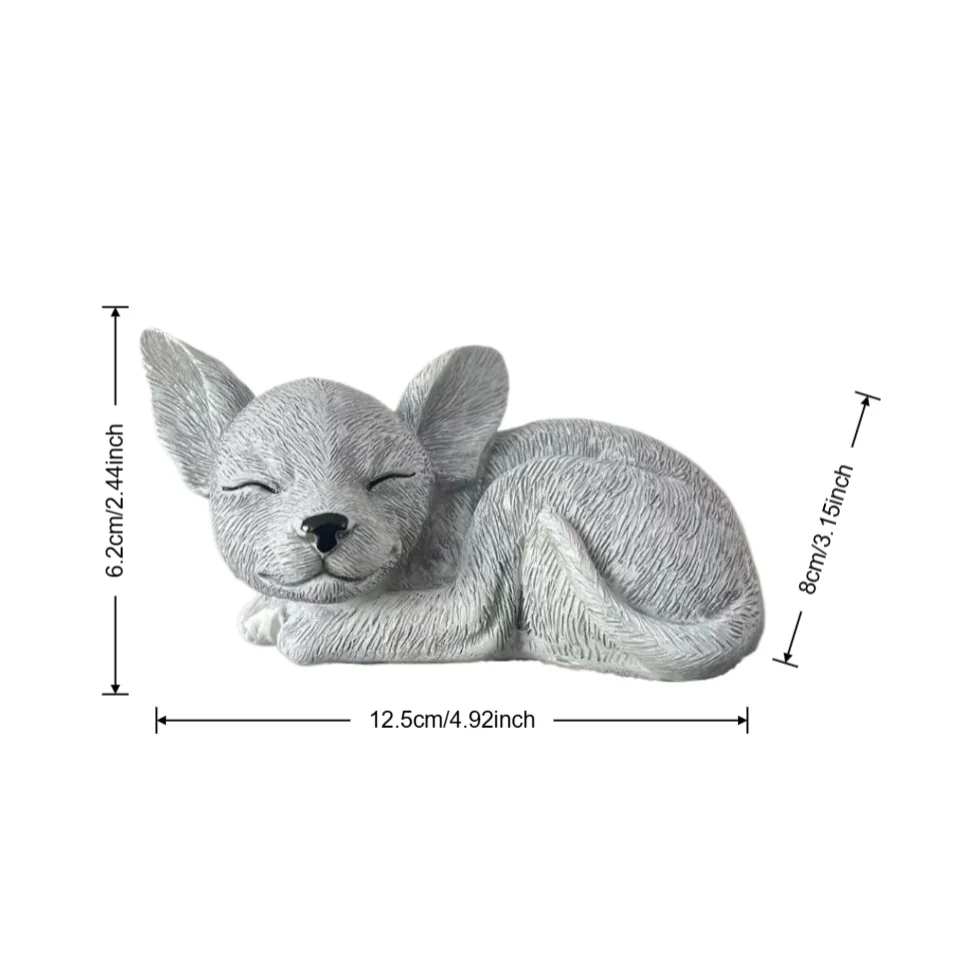 - Depicts a peaceful, sleeping Chihuahua with lifelike proportions, ideal for garden or terrace decor.