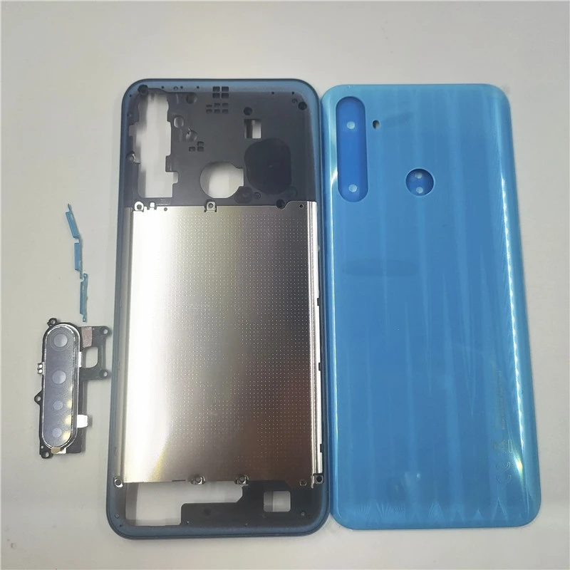 This replacement housing and battery back cover case panel is specifically designed for the Realme 6i (RMX2040). Constructed from durable plastic, it comes in three vibrant colors: a sleek grayish-green, a striking blue, and a clean white. Each panel features a glossy finish that enhances its modern aesthetics, along with cutouts for the camera and fingerprint sensor, ensuring seamless functionality. The smooth rectangular shape with rounded edges provides a comfortable grip while giving your smartphone a fresh look. Upgrade your device with this stylish and functional replacement panel today!