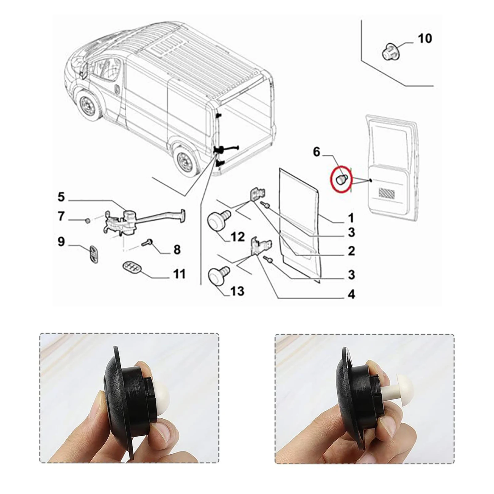 - This replacement button is made from high-quality, durable plastic designed to withstand daily use without cracking or fading. It fits the rear door of Fiat Ducato, Peugeot Boxer, and Citroen Relay (2006-2021).